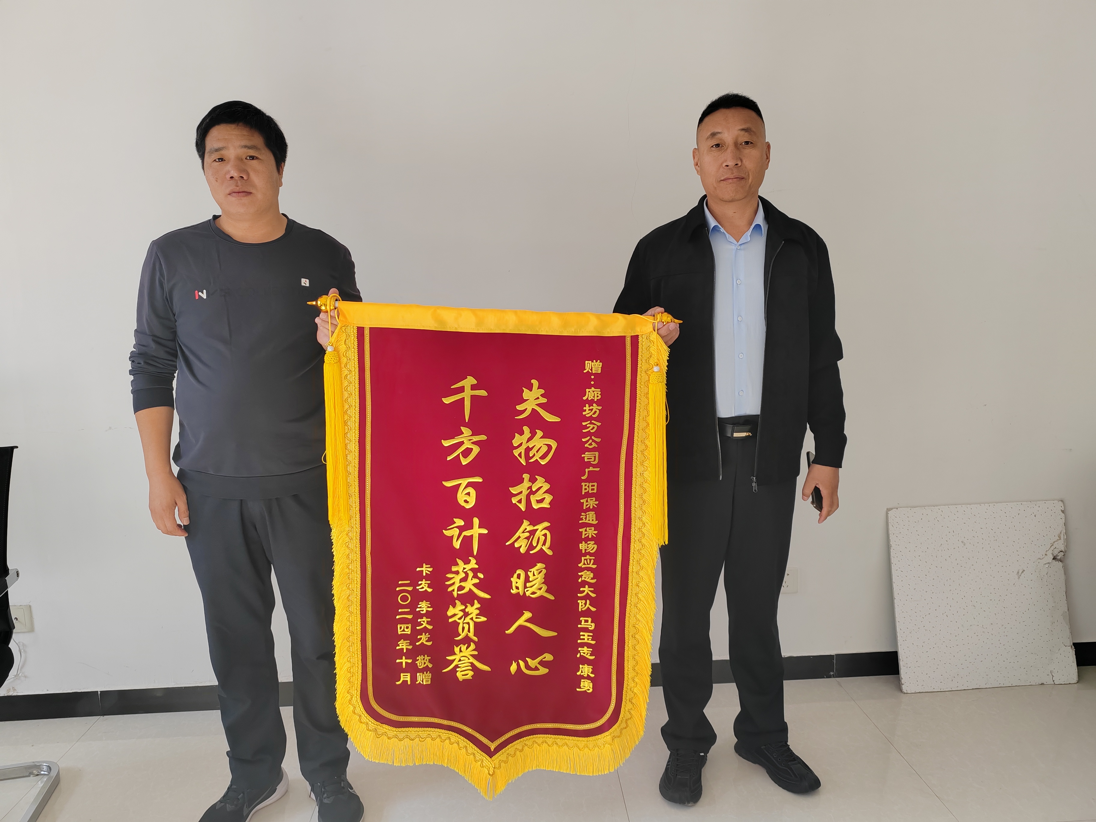 經(jīng)過(guò)近一個(gè)小時(shí)的緊張?zhí)幚恚?時(shí)40分,現(xiàn)場(chǎng)情況得到了有效控制。為了確保牛能夠順利回到主人身邊,廣陽(yáng)保通保暢應(yīng)急大隊(duì)隊(duì)長(zhǎng)馬玉志同志第一時(shí)間聯(lián)系相關(guān)部門(mén),查找到了失主,在大廣高速任丘服務(wù)區(qū)將牛交還給焦急等待的主人。當(dāng)看到自家的牛只安然無(wú)恙地被找回時(shí),那位主人激動(dòng)得熱淚盈眶,連聲道謝。之后,為了表示感謝,為廣陽(yáng)保通保暢應(yīng)急大隊(duì)制作了錦旗,其中特別鳴謝了馬玉志同志與康永同志。