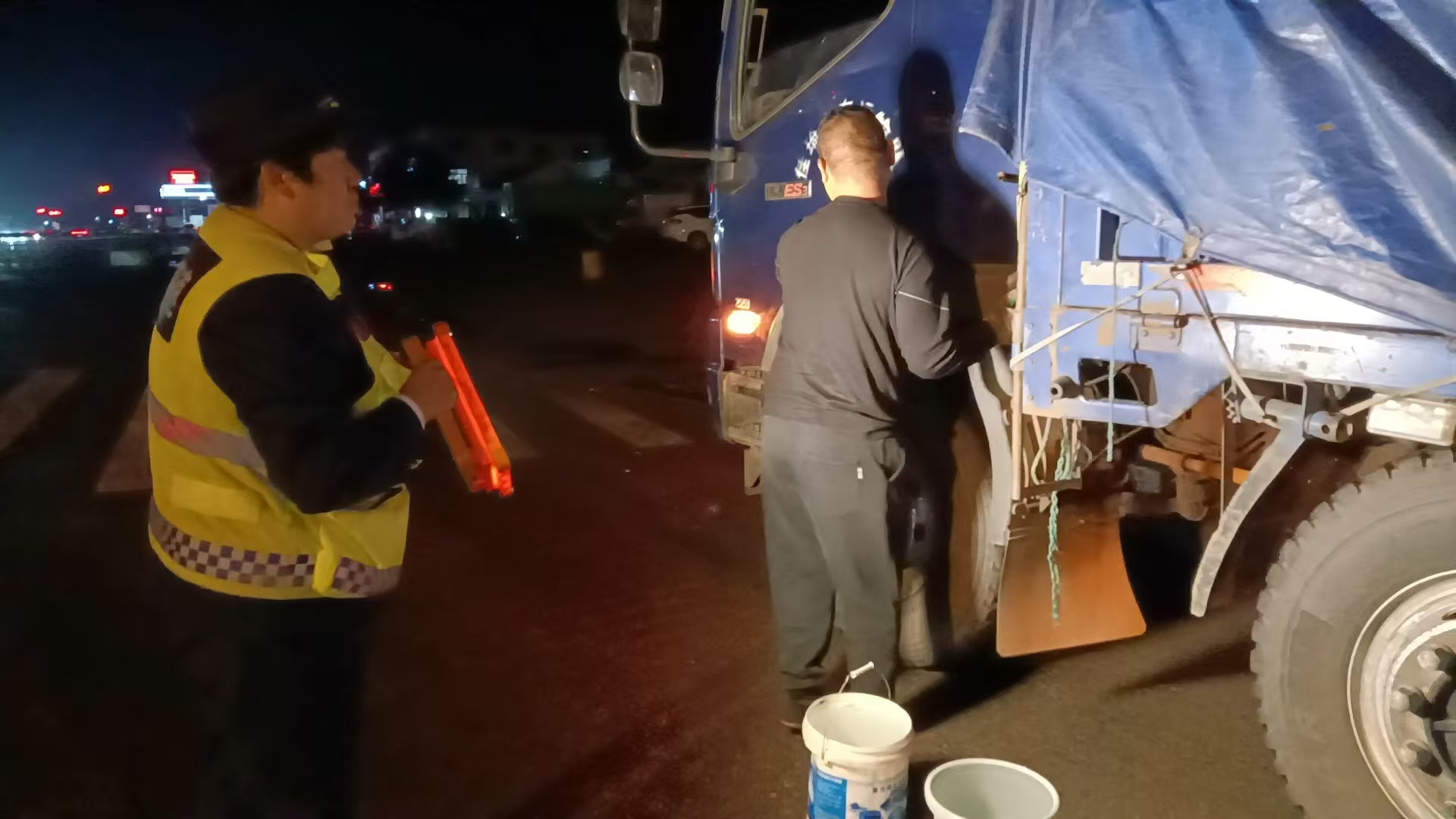 回振仙立即趕來,上前詢問。經(jīng)了解,原來是該車水箱燒干,水管破裂,發(fā)生故障?;卣裣呻S即將車輛引導(dǎo)至安全區(qū)域,并找來照明設(shè)備,用水桶打滿水陪同司機一起用冷水降溫,隨后又找來專業(yè)維修人員幫助司機進行了簡單的初檢維修,把車輛損失降到最少。