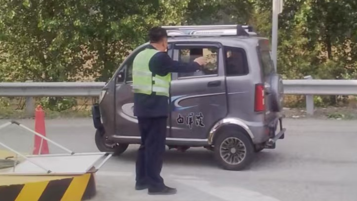 10月30日上午,一輛老年代步車緩緩朝著香河西收費(fèi)站入口車道駛來,收費(fèi)員發(fā)現(xiàn)該情況后,立即上報(bào)了班長(zhǎng),班長(zhǎng)立即跑上前進(jìn)行勸阻,并將老年代步車指引至安全區(qū)域???。