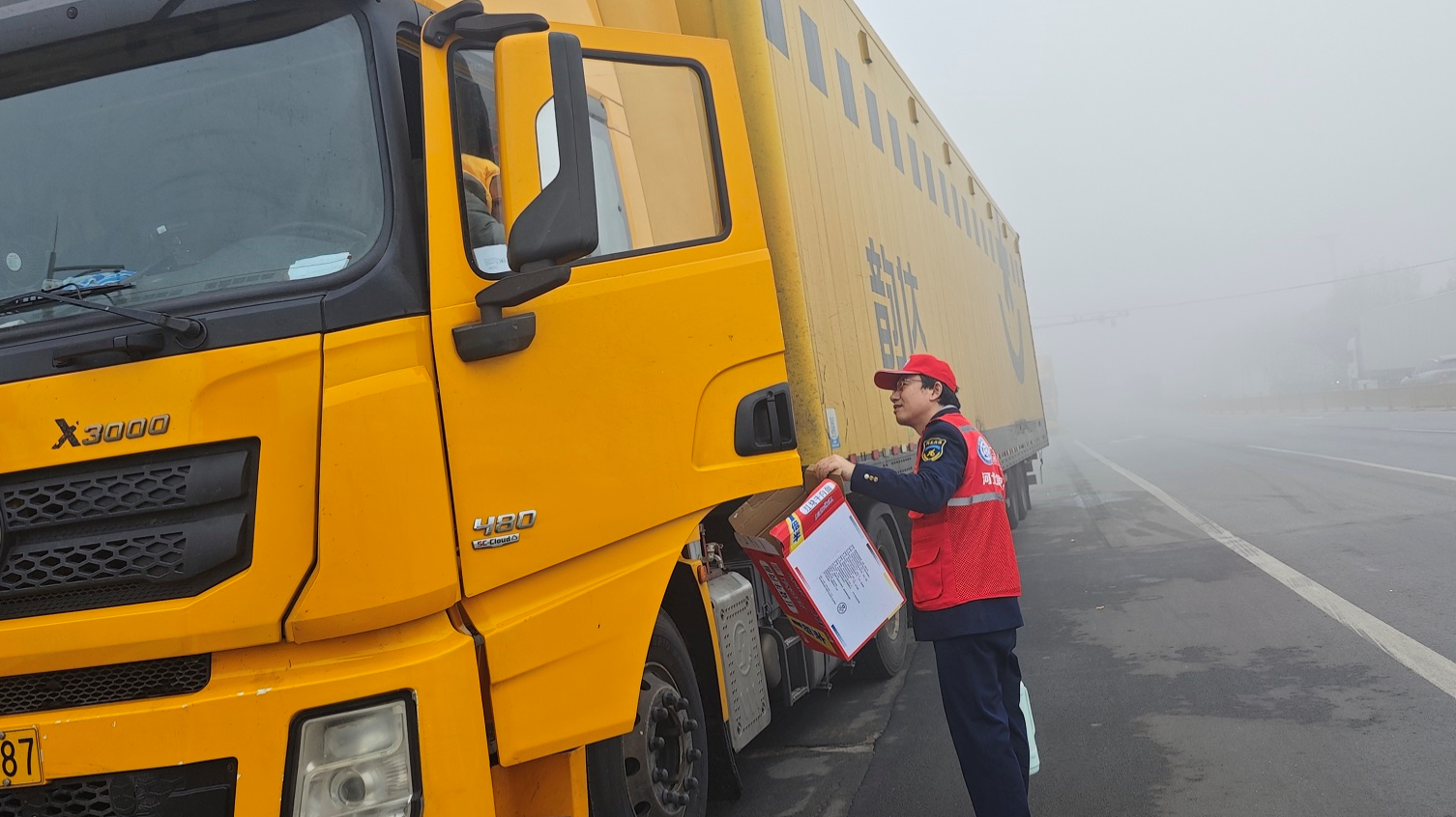 11月1日0時33分,因受大霧天氣影響,香河收費站實施交通管制,直至7時,大霧仍未散去,交通管制仍在持續(xù),不少車輛都滯留在了收費廣場。為了緩解司乘人員焦急等待的情緒,香河收費站黨員志愿者們積極開展了延伸服務(wù)。