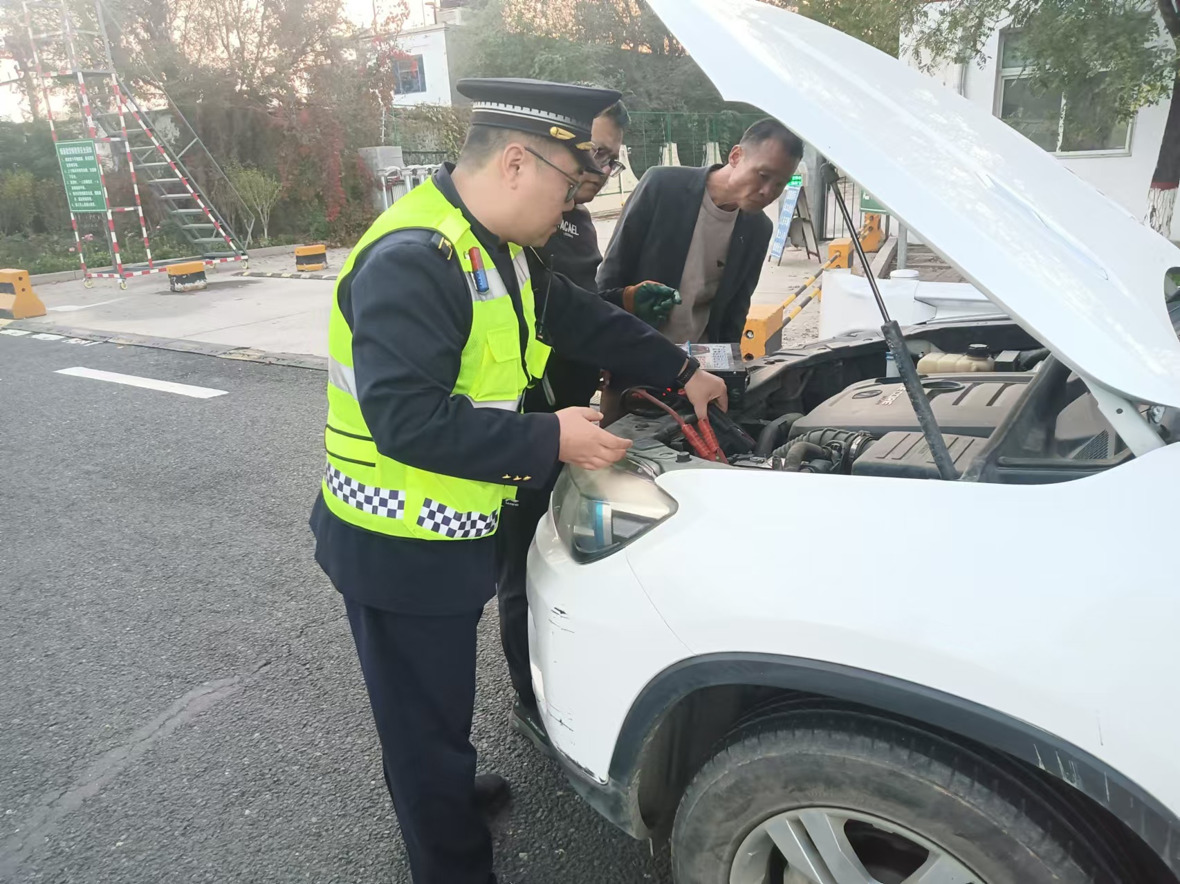 仝曉鵬迅速將故障車推到外廣場安全地帶,在車輛后方擺放反光桶以防后方車輛追尾。隨即,他飛奔到站內(nèi)取來自己的電子打火裝置,熟練地連接電瓶。第一次啟動失敗,他反復(fù)調(diào)整,再次嘗試,隨著發(fā)動機的轟鳴聲,車輛終于啟動了。