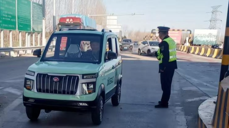 12月6日13時(shí)左右,一輛老年代步車緩緩向香河西收費(fèi)站入口車道駛來。收費(fèi)人員發(fā)現(xiàn)該情況后迅速反應(yīng),立即上前進(jìn)行勸阻。