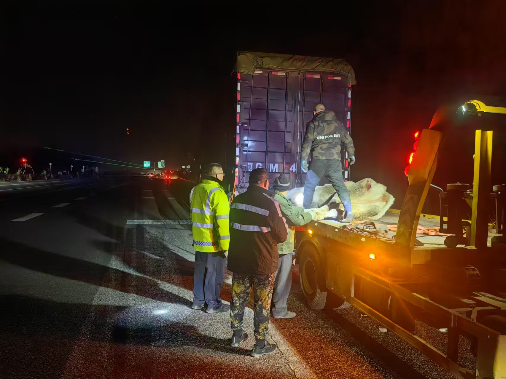 12月10日凌晨2時30分左右,在京滬高速公路上海方向K171處發(fā)現(xiàn)一頭牛在路上奔走,過路車輛紛紛躲閃避讓,場面險象環(huán)生,京滬分公司滄州保通保暢應(yīng)急大隊在接到監(jiān)控通知后,及時趕赴現(xiàn)場。