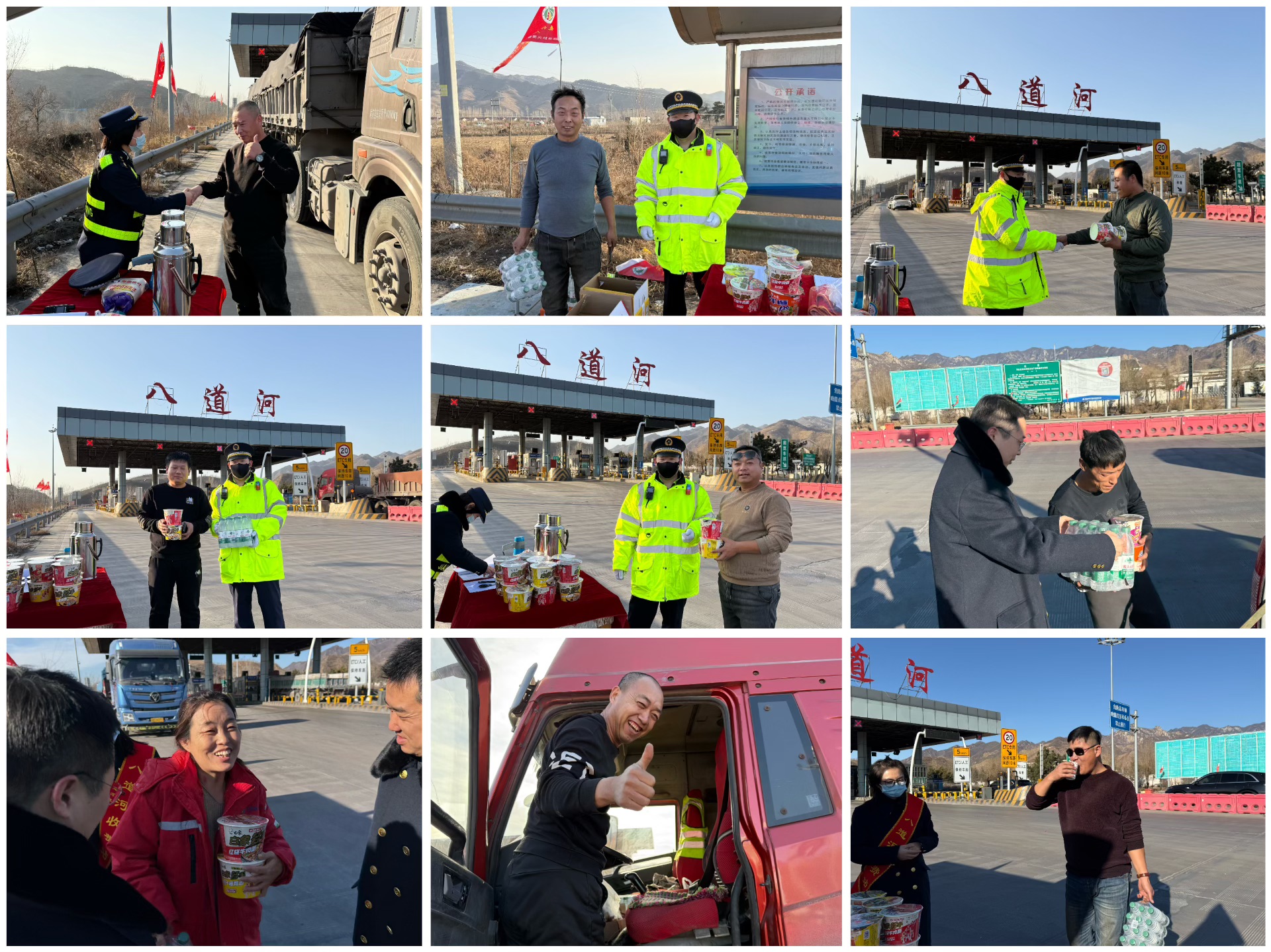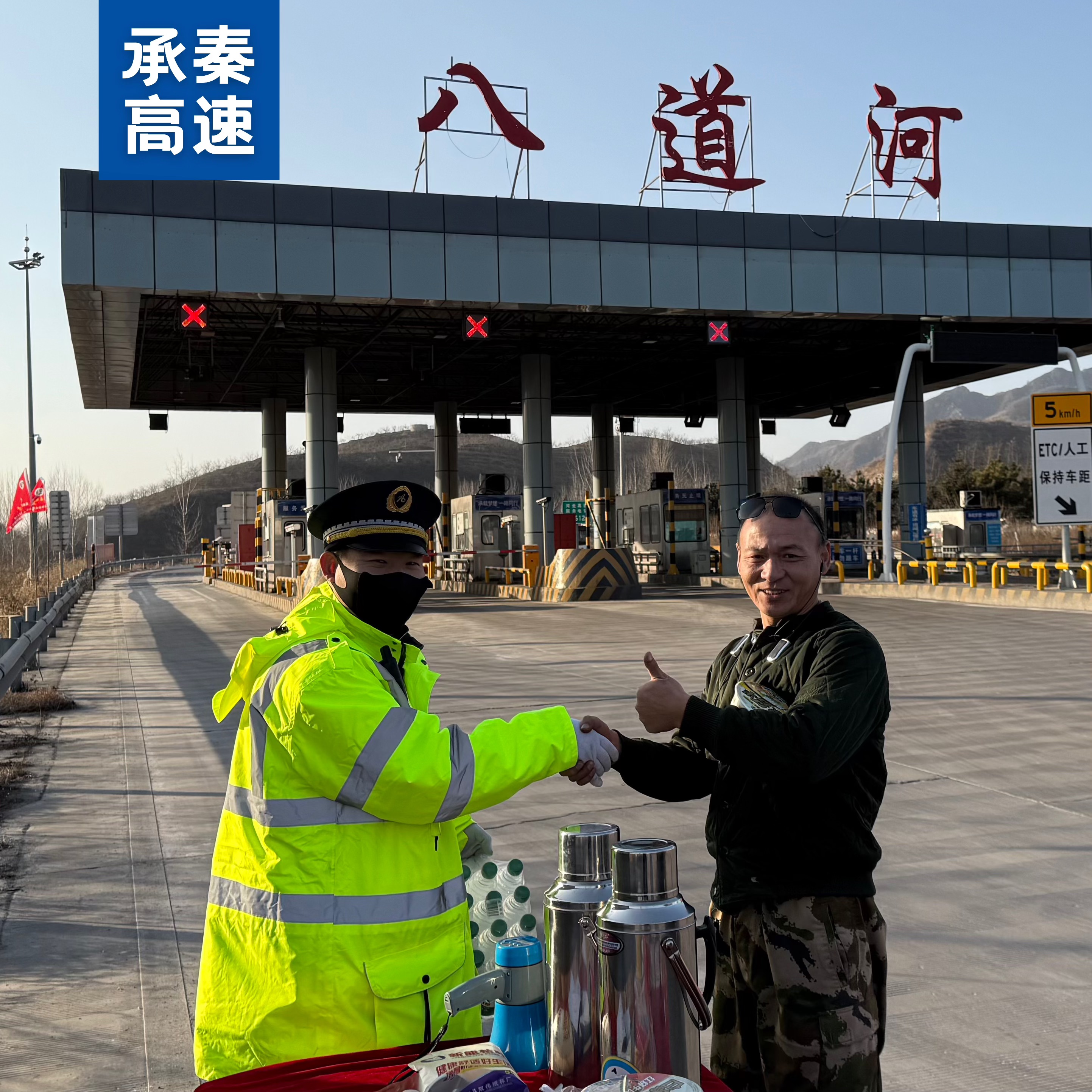 “司機師傅,辛苦了,給您準備了泡面和飲用水,祝您一路順風(fēng),平安到達?!薄爸x謝你們,你們辛苦了?!边@是發(fā)生在八道河收費站的暖心一幕