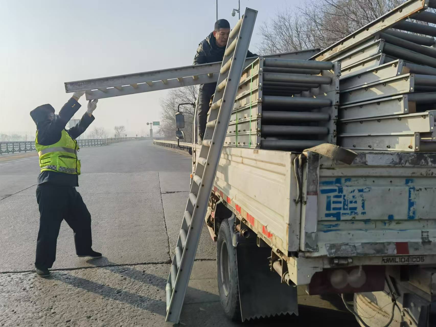 1月9日,在京滬分公司南皮站上道口發(fā)生了暖心的一幕,收費班長董金亮當起了“搬運工”,幫助司機將散落貨物重新裝上車,順利踏上行程。