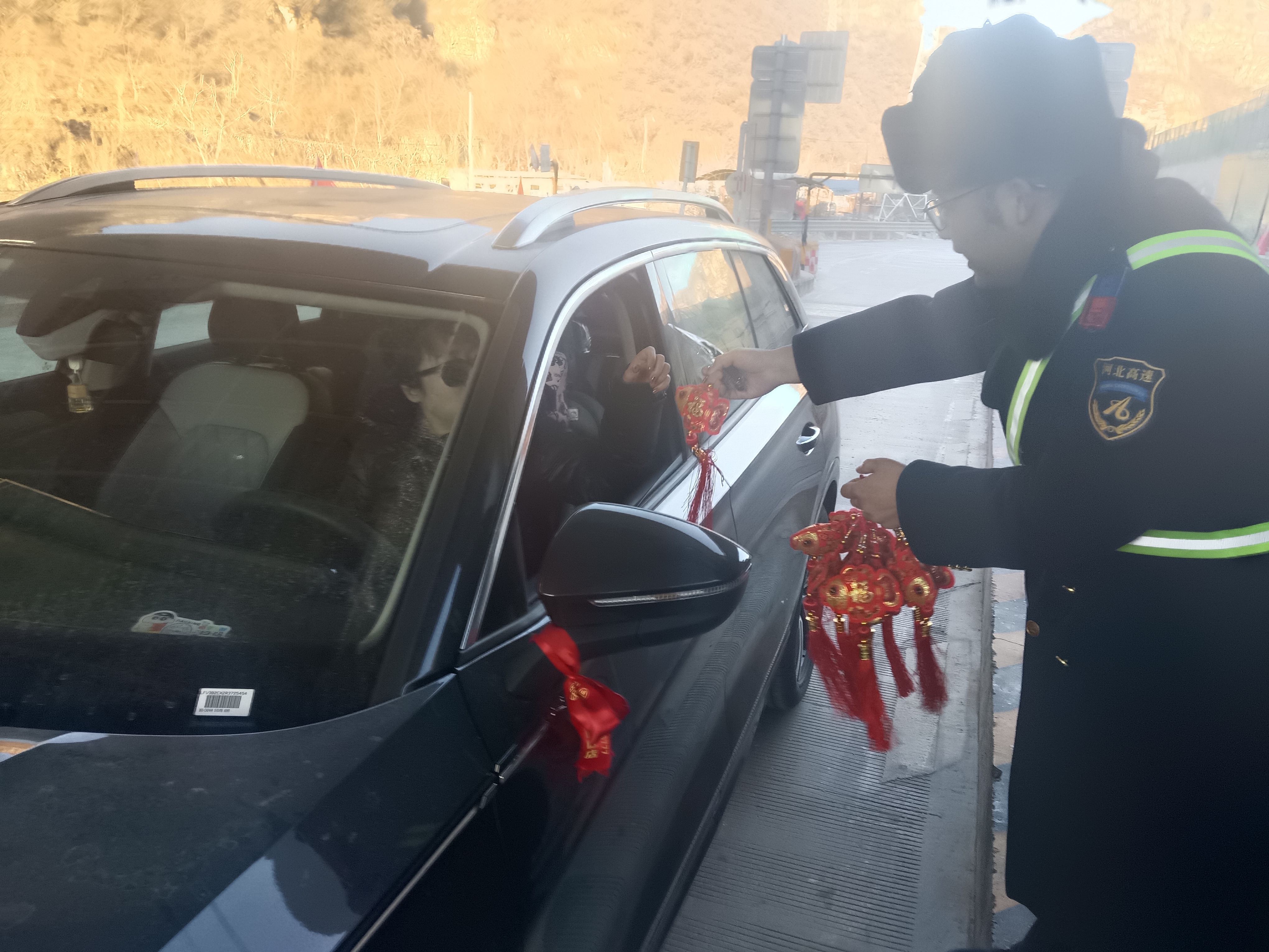 除夕早上,淶水環(huán)京收費站收費一班的工作人員整齊到崗,精神抖擻地開啟了一天的工作。為了讓奔波在路上的司乘人員感受到春節(jié)的溫暖,他們精心籌備了一場溫馨的贈禮活動?;顒右婚_始,身著整潔制服的收費員們,臉上洋溢著真誠的笑容,手捧著滿載新春祝福的小禮物,靜候過往車輛。當一輛輛汽車緩緩通過,工作人員便迅速上前,將寓意吉祥的小魚掛件、充滿祝福的福字,鏟除冰雪的除雪鏟等禮物,輕輕遞到司乘人員手中,并送上一句真摯的“新年好”。