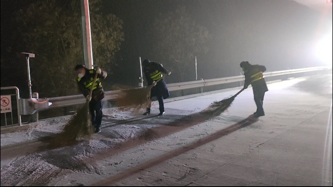 0:40,隨著降雪來臨,保暢小組迅速行動(dòng),有序開展除雪保暢工作。對(duì)收費(fèi)廣場(chǎng)、車道、站區(qū)鏟雪除冰,加強(qiáng)收費(fèi)車道、ETC車道人員值守和收費(fèi)廣場(chǎng)人員前置式指揮,合理擺放安全警示標(biāo)志牌,引導(dǎo)車輛有序安全通行,全力提升收費(fèi)站通行能力和通行效率,把降雪對(duì)群眾出行的影響降到最低。同時(shí)發(fā)布實(shí)時(shí)路況信息,保障廣大司乘人員按需調(diào)整出行安排。