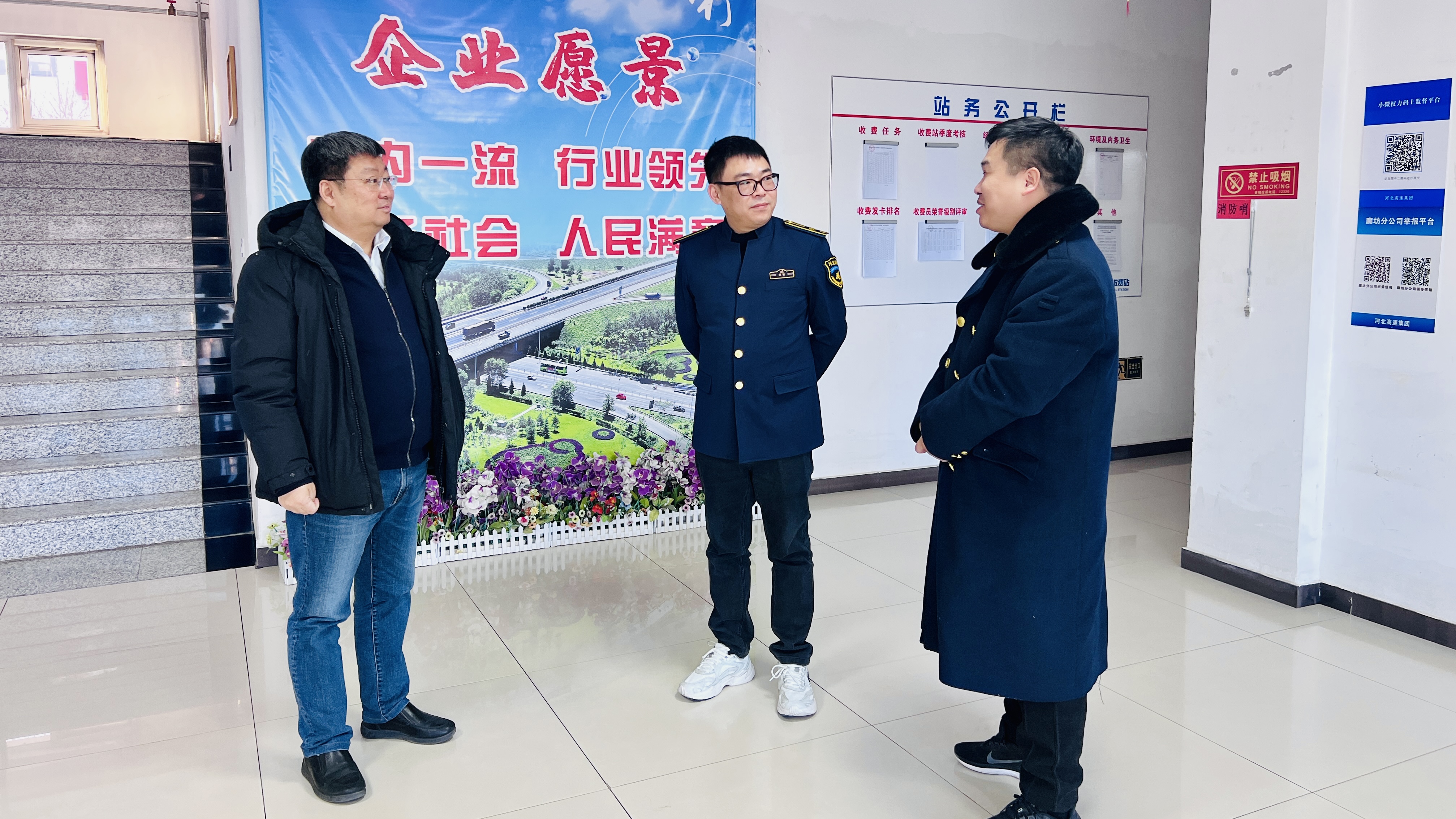 2月7日下午,廊坊分公司黨委書記智韶宇在分公司建管處辦公室主任劉洋的陪同下,前往東灣收費(fèi)站進(jìn)行調(diào)研指導(dǎo),為收費(fèi)站新一年的發(fā)展注入強(qiáng)大動力。
