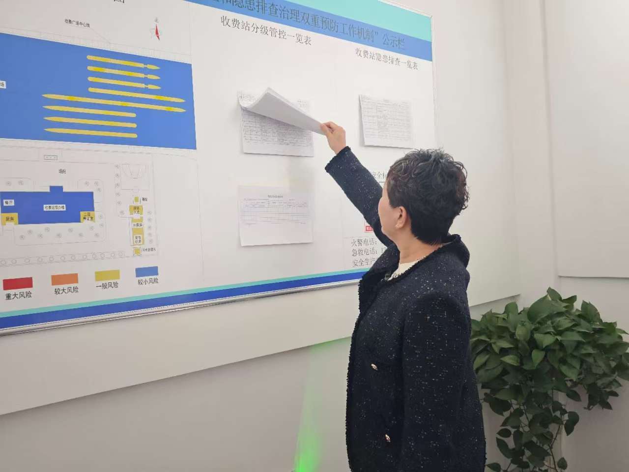 弓春燕一行實(shí)地考察燕郊西收費(fèi)站院區(qū)內(nèi)的空置地,了解了日常打理情況及空置地周圍的交通狀況,查看了收費(fèi)辦公區(qū)大廳、活動(dòng)室等,了解了站內(nèi)文化建設(shè)、安全標(biāo)語(yǔ)上墻情況。