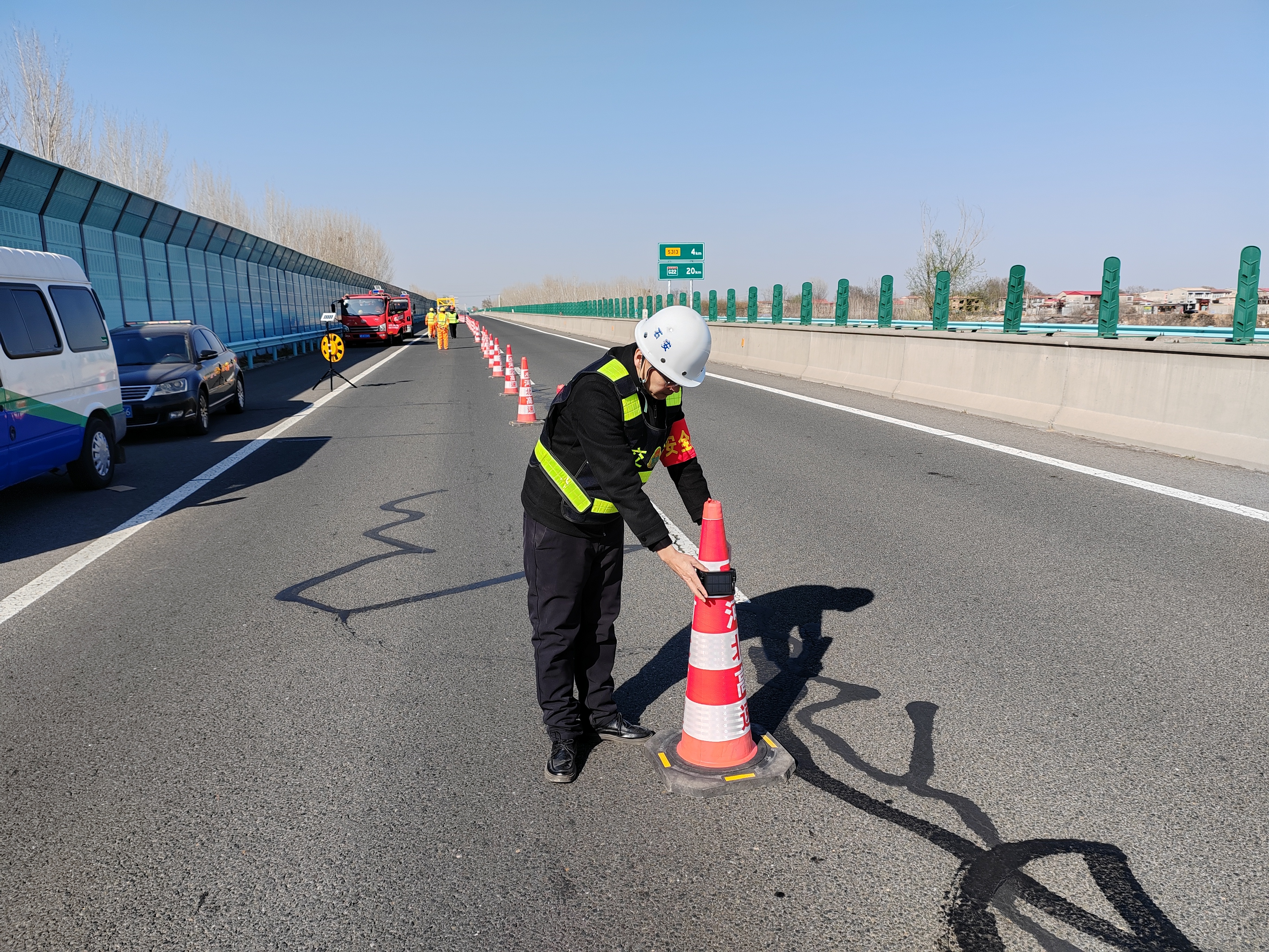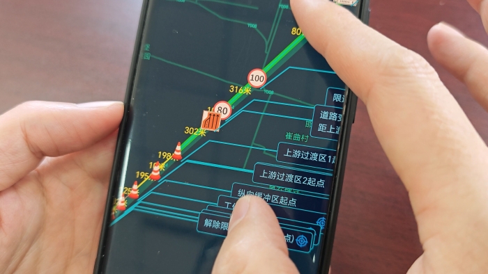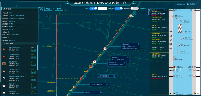 監(jiān)管系統(tǒng)通過搭載太陽能供電系統(tǒng)的北斗衛(wèi)星定位系統(tǒng),實時采集、精準標定、遠程監(jiān)管高速公路養(yǎng)護施工控制區(qū)的位置與距離, 并持續(xù)預警施工信息。通過電腦PC端與手機APP遠程監(jiān)管平臺,結合現(xiàn)有全程監(jiān)控,各級管理人員可實時查看施工區(qū)域動態(tài),實現(xiàn)全程數(shù)據(jù)追溯功能,成功構建起“前端感知-智能研判-即時響應”的安全防線。在石安分公司養(yǎng)護工程實踐中,該平臺展現(xiàn)出顯著成效,石安分公司主線養(yǎng)護工程施工現(xiàn)場,標志牌、路錐整齊排列擺放精準、規(guī)范。