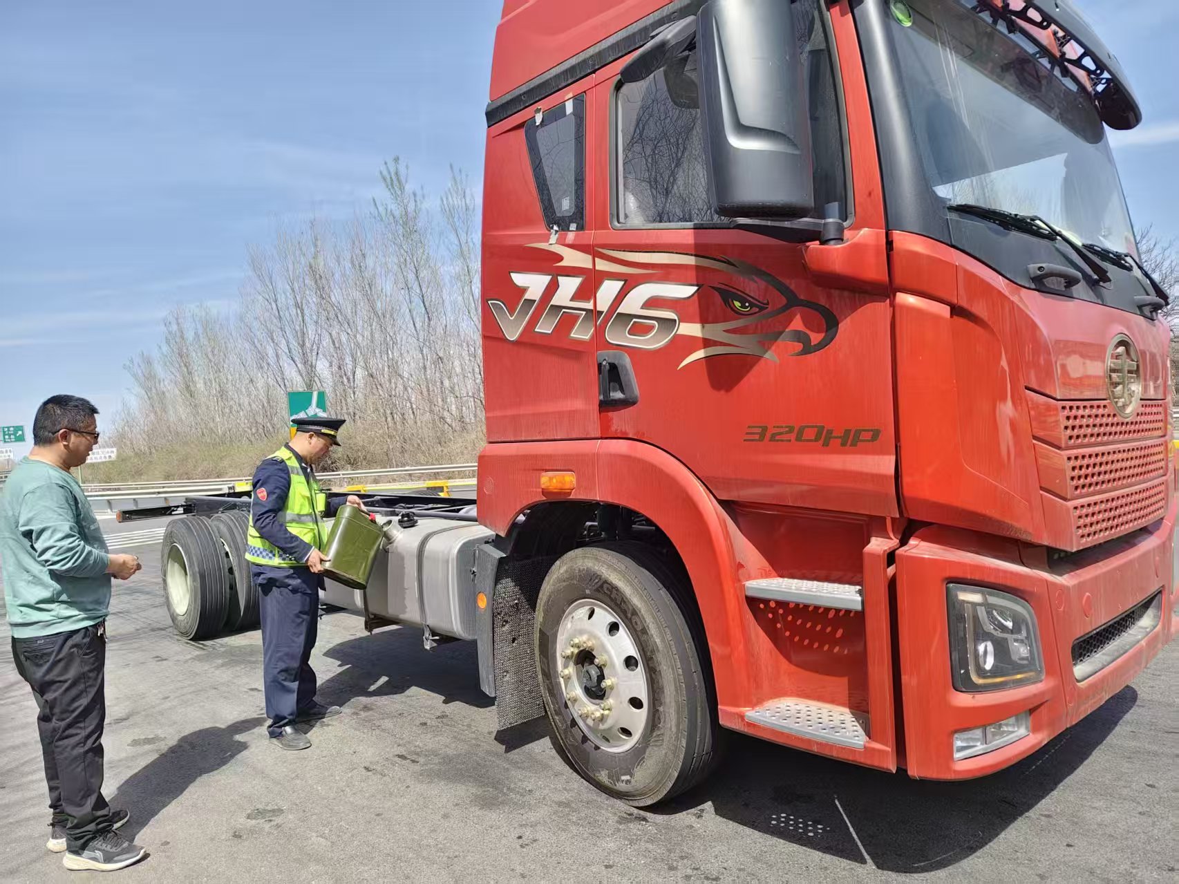 正在收費(fèi)廣場(chǎng)巡查的收費(fèi)班長(zhǎng)李朋朋,憑借著職業(yè)的敏銳度,第一時(shí)間注意到了貨車司機(jī)的異樣。他快步上前,禮貌又關(guān)切地詢問(wèn):“師傅,您好!是車子出什么問(wèn)題了嗎?”貨車司機(jī)無(wú)奈又著急地說(shuō):“可算下高速了,我這車沒(méi)油了,你看這加油站就在跟前,車卻動(dòng)不了了,這可咋辦吶!”