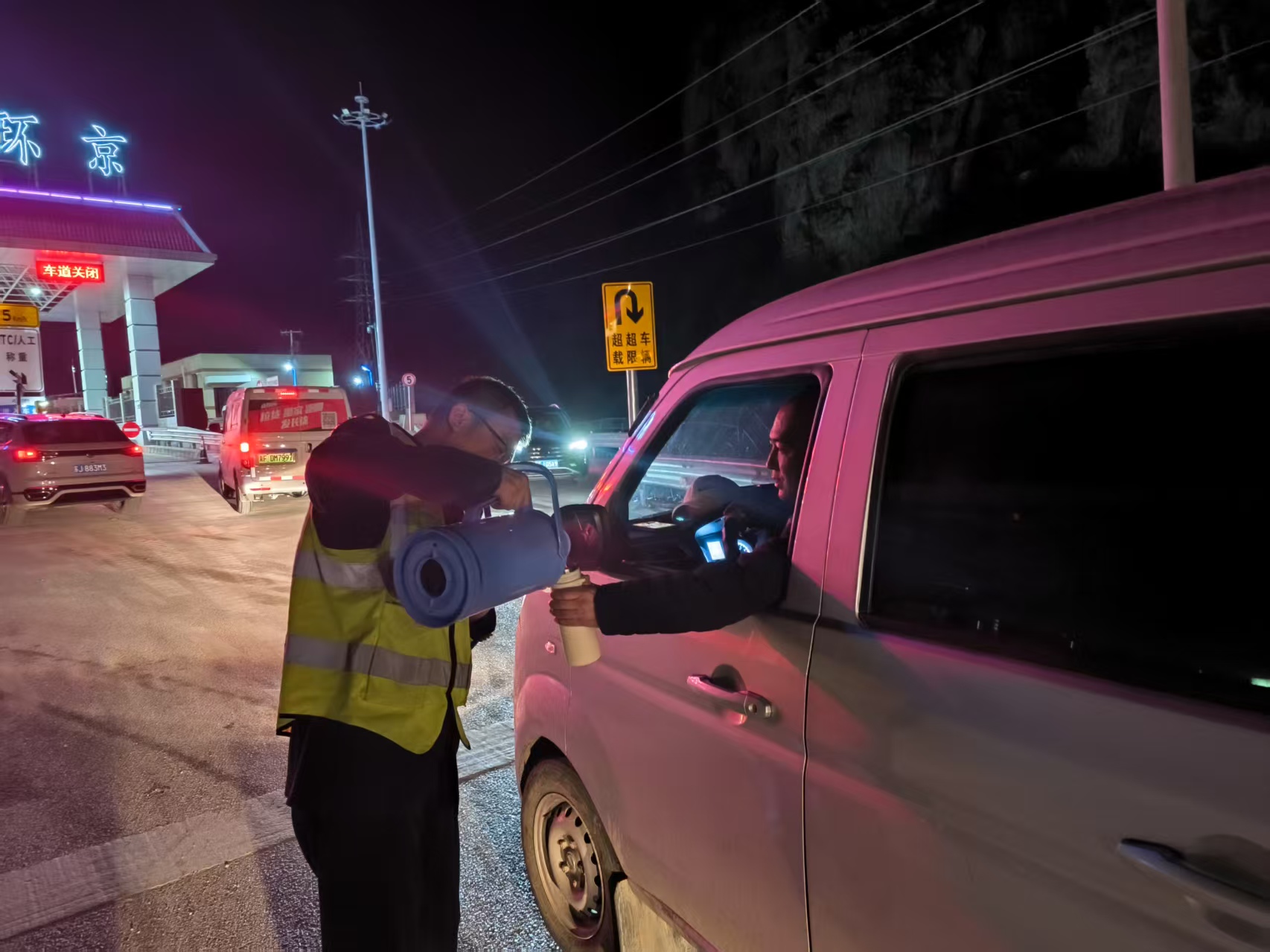 2025年3月30日晚,廊涿高速突發(fā)交通事故,淶水環(huán)京收費(fèi)站封閉,部分車輛滯留。收費(fèi)站迅速行動(dòng),安撫滯留車輛。工作人員一方面和交警、路政密切聯(lián)系,了解事故處理進(jìn)度和路況;另一方面,指揮滯留車輛駛向安全區(qū)域,防止擁堵和事故發(fā)生。