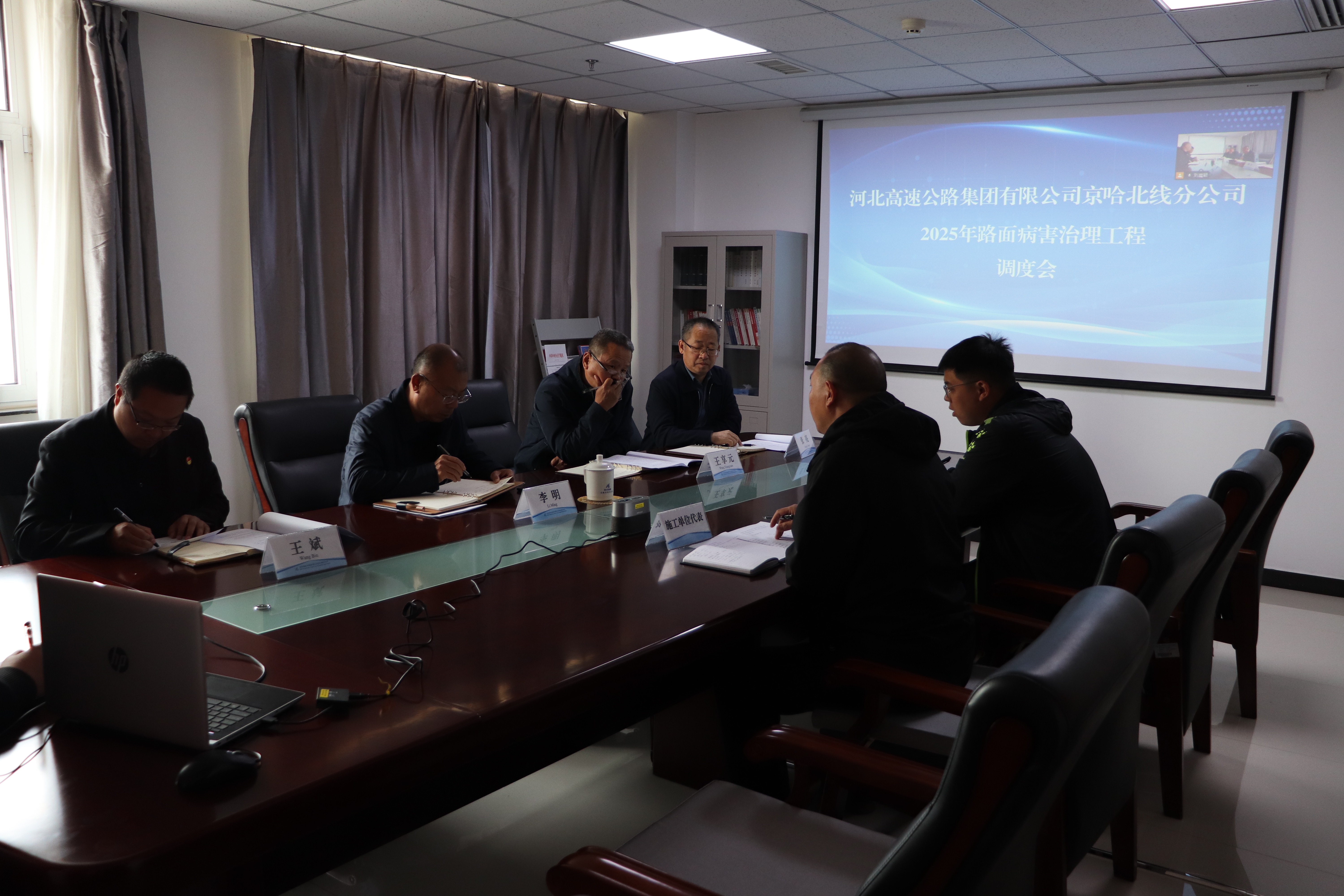 4月8日下午,京哈北線分公司組織召開2025年路面病害治理專項工程調度會,此次會議由京哈北線分公司運營管理部牽頭組織,旨在全面梳理當前路面病害治理專項工程的進展情況,協(xié)調解決工程推進過程中遇到的問題,并對下一階段工作進行周密部署,以確保工程能夠按時、高質量地圓滿完成。分公司黨委委員、副總經理李明出席會議并提出相關要求,運營管理部、安全環(huán)保部、指揮調度中心、東新莊收費站、施工單位、第三方檢測單位相關負責人員列席會議。