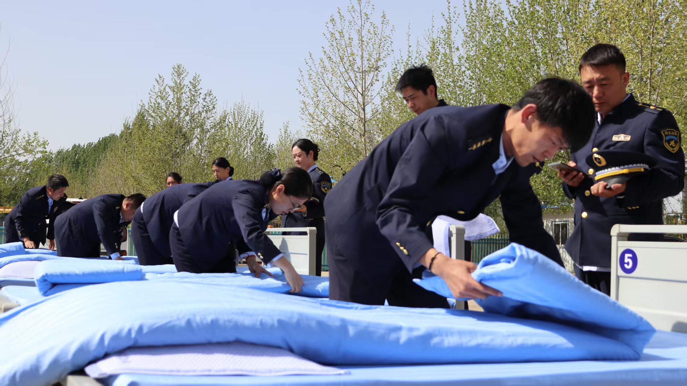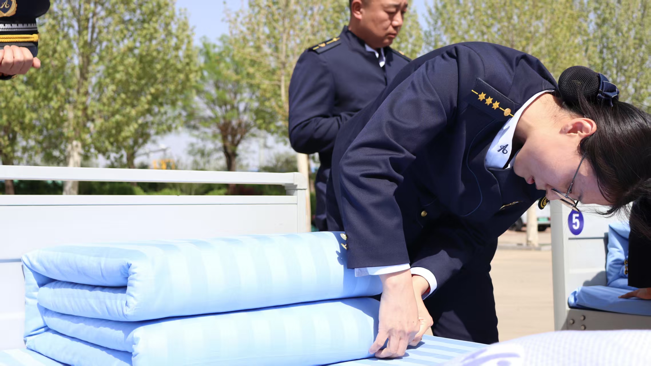 比賽開始前,主持人詳細(xì)講解了比賽規(guī)則和評分標(biāo)準(zhǔn),評分內(nèi)容涵蓋了床鋪整理、被褥疊放、物品擺放等方面,要求被褥疊放整齊、棱角分明,物品擺放有序、統(tǒng)一規(guī)范。