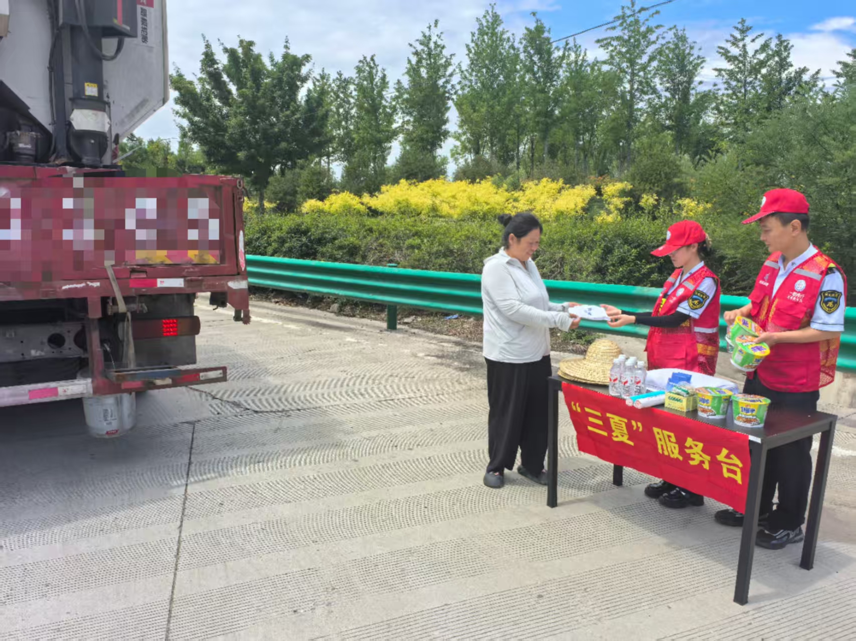 固安東收費站在“三夏”服務(wù)臺,為跨區(qū)作業(yè)的司乘提供方便面、礦泉水、通行指南、藿香正氣水、毛巾、草帽等物資;同時與當?shù)剞r(nóng)業(yè)部門聯(lián)動,及時發(fā)布實時路況和收割進度,進一步提升助力“三夏”農(nóng)機的高效調(diào)度水平。
