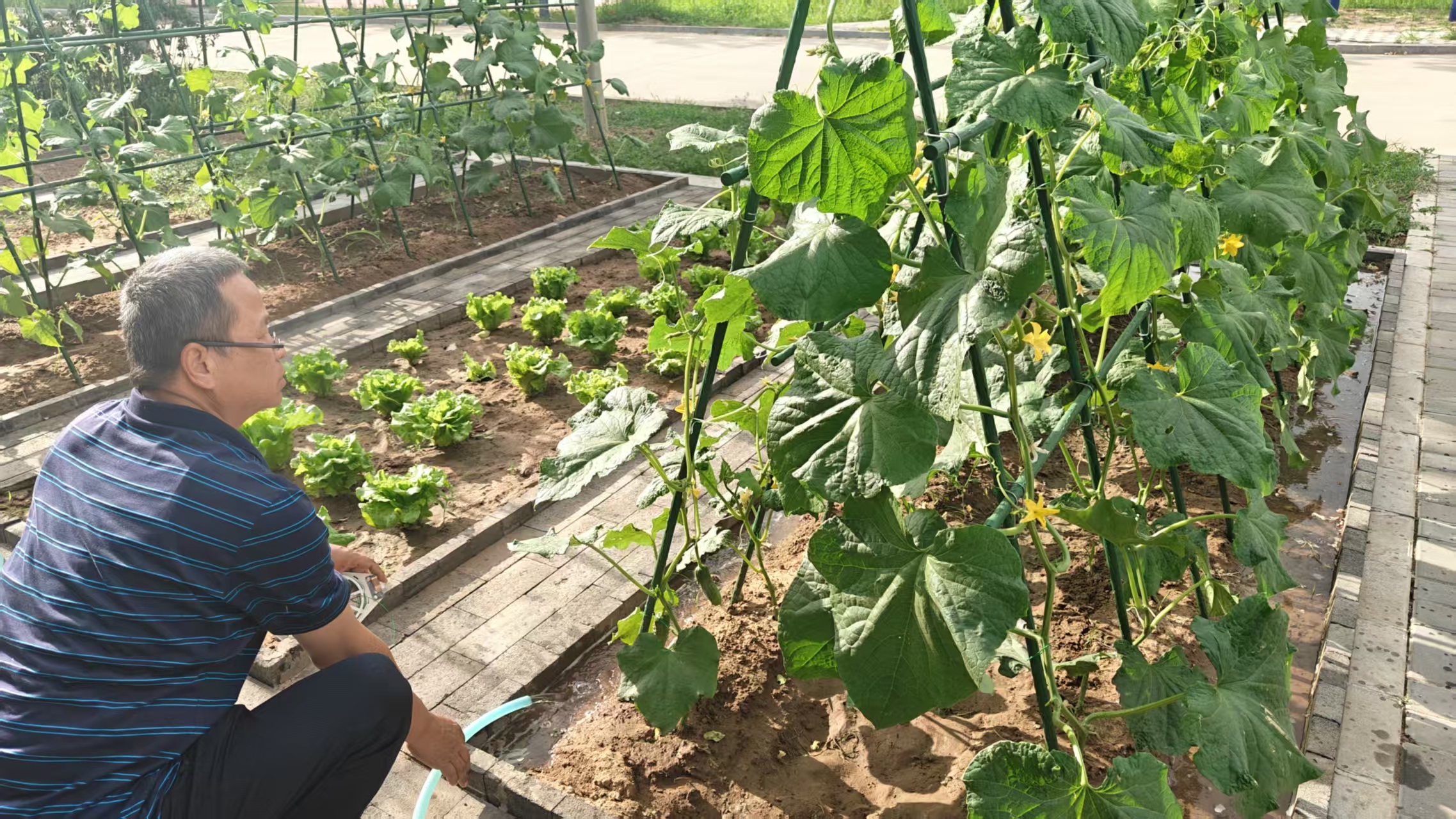為響應(yīng)節(jié)約型機關(guān)建設(shè)號召、豐富職工業(yè)余生活,分公司精心籌備,在機關(guān)南院一角開辟了小菜園。從土地平整、土壤改良,到圍欄搭建,每個環(huán)節(jié)都凝聚著機關(guān)工作人員的心血。種植經(jīng)驗豐富的“技術(shù)顧問”老王承擔(dān)起物資采購與種植養(yǎng)護(hù)工作,跑遍周邊市場對比苗種價格,育苗、種植、鋪膜,不辭辛勞。小菜園布局合理、功能完備,在品種選擇上,充分考慮本地氣候與職工飲食習(xí)慣,挑選了西紅柿、生菜、黃瓜等常見蔬菜。