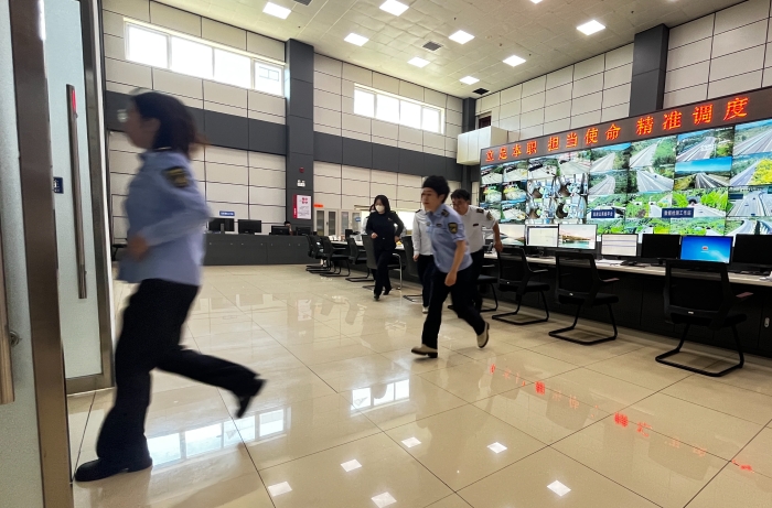 隨著指揮員一聲令下,機(jī)房電路模擬發(fā)生火災(zāi),七氟丙烷滅火器自動啟動,聲光報(bào)警器發(fā)出急促警報(bào)!指揮調(diào)度中心立即啟動應(yīng)急預(yù)案,當(dāng)班班長迅速組織職工沿預(yù)定路線撤離,全體人員臨危不亂、行動迅速、有序疏散,僅用時13秒監(jiān)控大廳所有人員就已全部撤離至安全區(qū)域,演練達(dá)到預(yù)期效果。