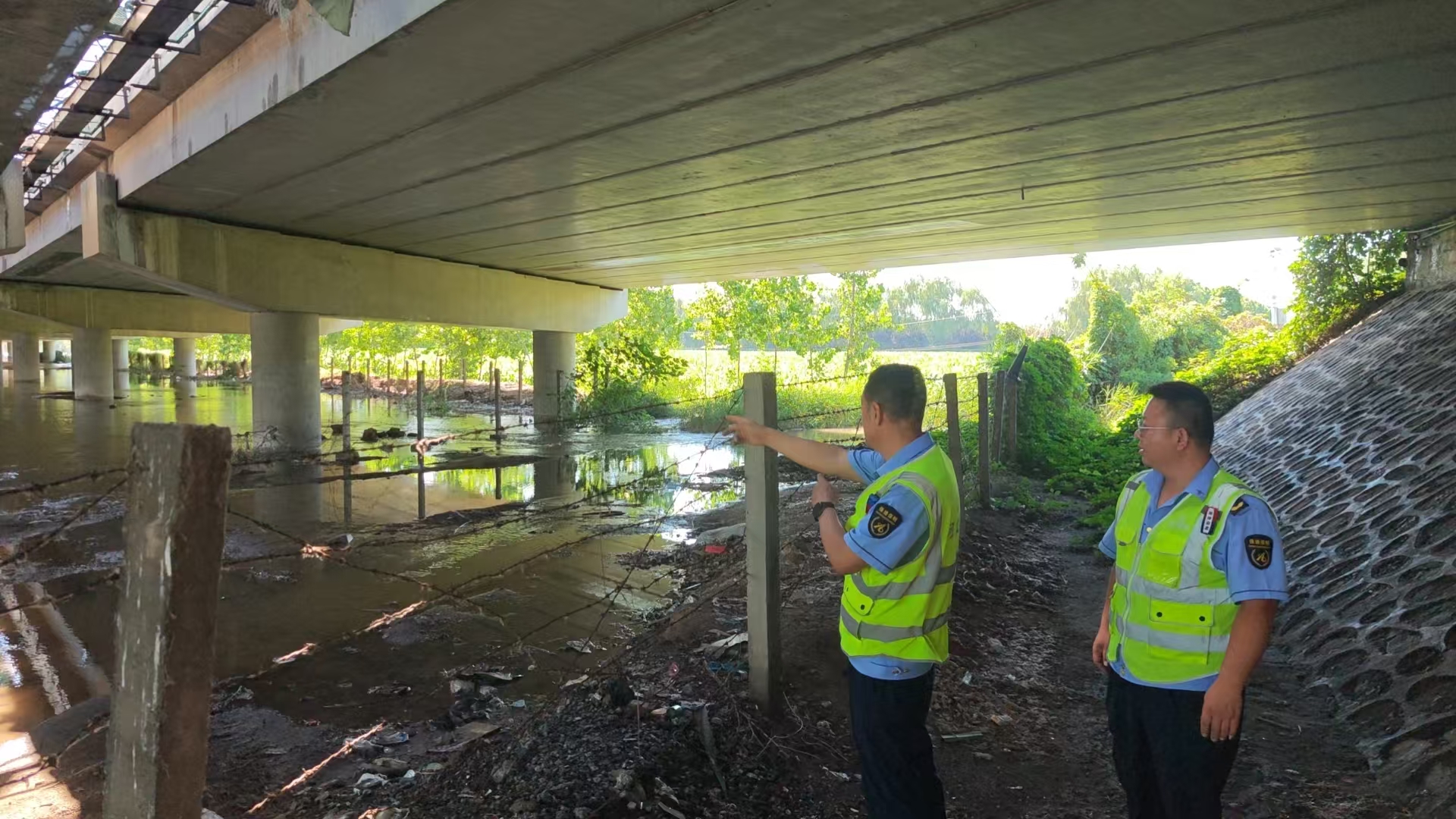巡查人員以潮白河大橋及周邊河道為核心區(qū)域,仔細(xì)檢查水位情況、橋梁基礎(chǔ)、防撞護(hù)欄、引道邊坡等關(guān)鍵部位的安全狀況,同時(shí)密切關(guān)注上游來水速度與下游泄洪通道的通暢情況,確保第一時(shí)間發(fā)現(xiàn)滑坡、結(jié)構(gòu)變形等潛在風(fēng)險(xiǎn)。為提升應(yīng)急處置效率,大隊(duì)還提前調(diào)配了沙袋、警示