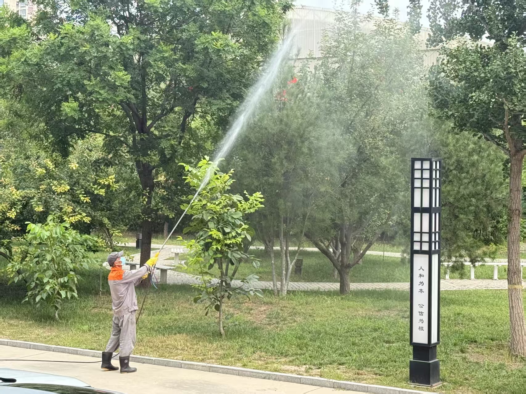 此次消殺工作針對總部院區(qū)各類綠植、綠化帶等重點(diǎn)區(qū)域,通過科學(xué)配比藥劑、專業(yè)設(shè)備噴灑的方式,全面覆蓋可能滋生蚊蟲、引發(fā)病蟲害的角落,徹底從源頭切斷疾病傳播鏈條,同時(shí)為苗木健康生長筑牢防護(hù)屏障。