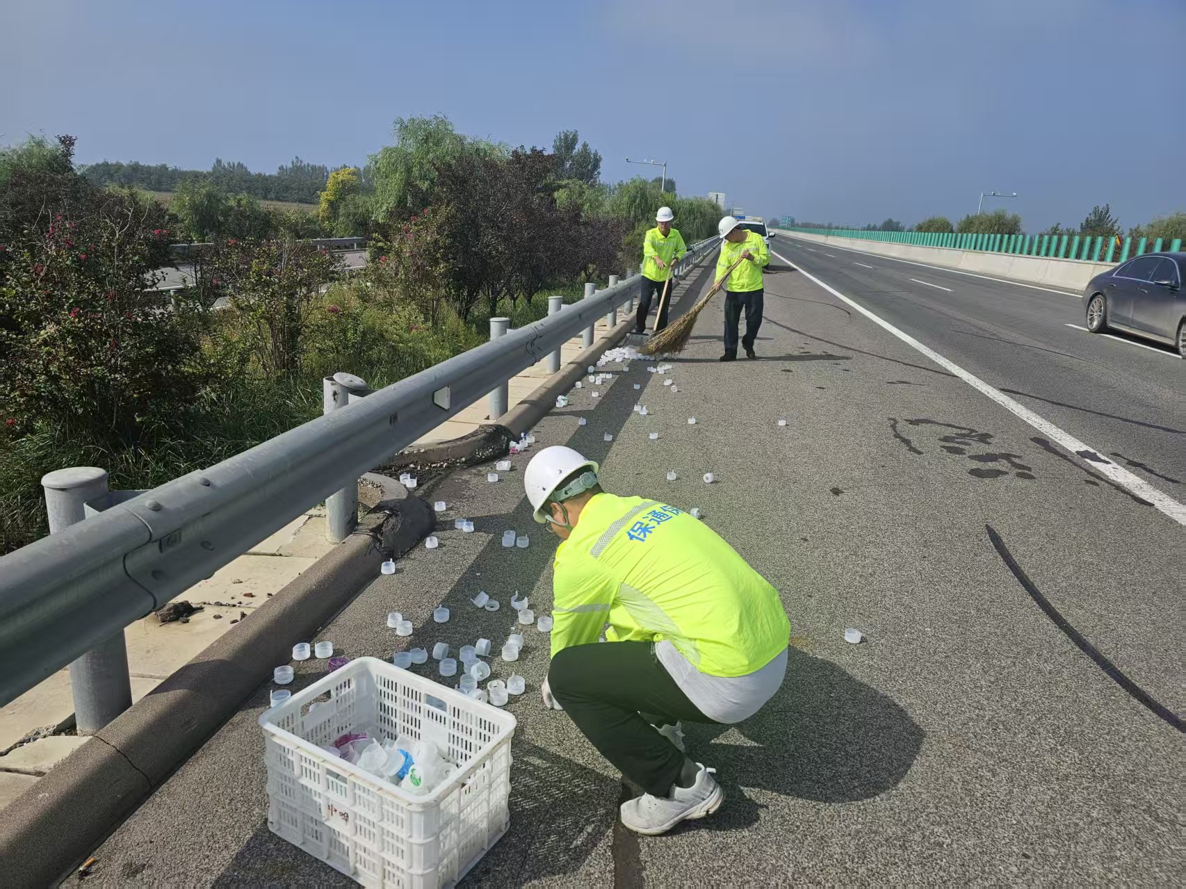 9月25日,龐家村駐外中隊隊員在日常巡查中,發(fā)現(xiàn)衡水方向K164+900處路面散落大量拋灑物,綿延200余米,給過往車輛造成一定安全影響。