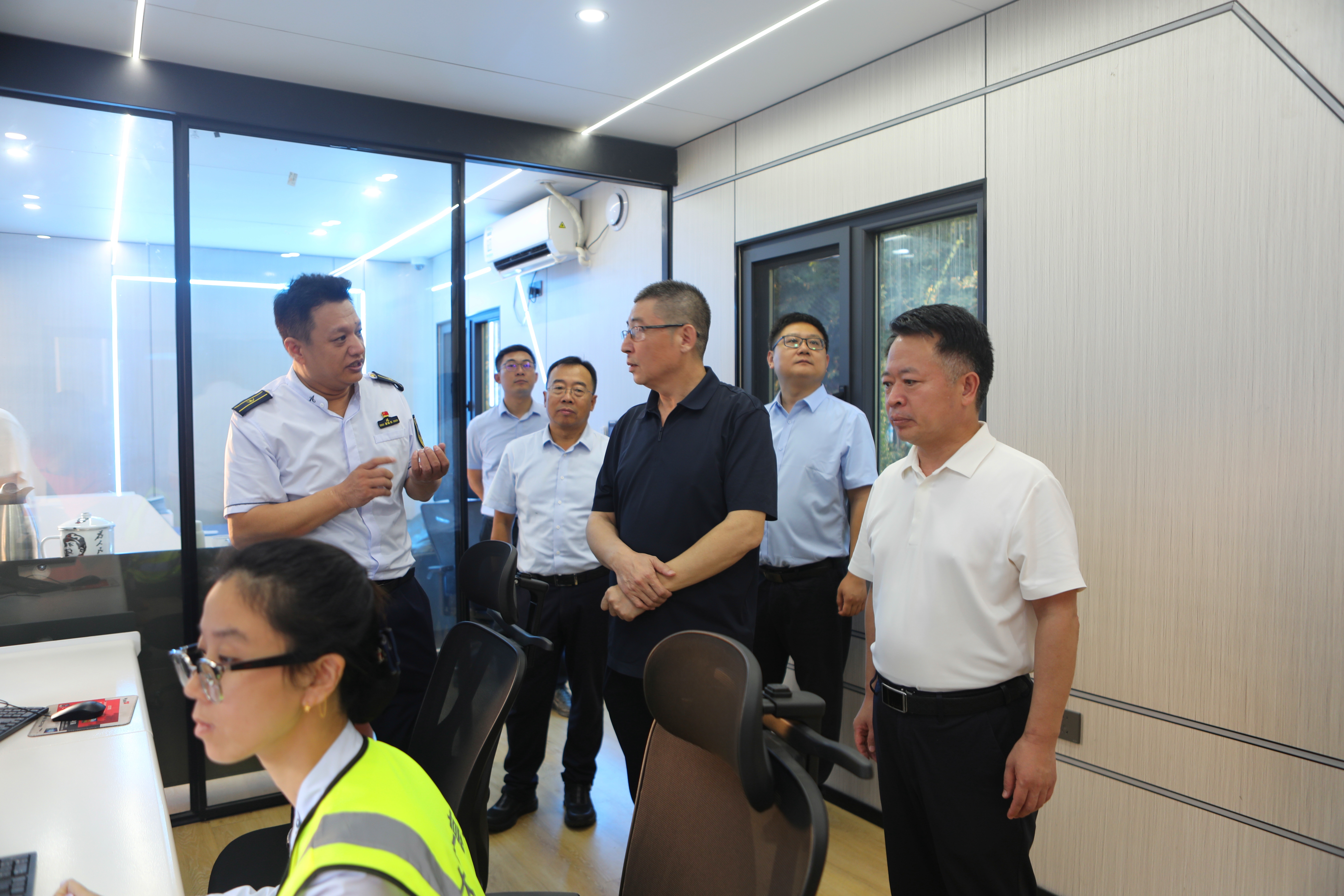 在白洋淀收費(fèi)站,督導(dǎo)組來(lái)到收費(fèi)廣場(chǎng)和智慧云倉(cāng),對(duì)智慧化改造后機(jī)電設(shè)備運(yùn)行、少人化值守現(xiàn)狀、站口特情處置、