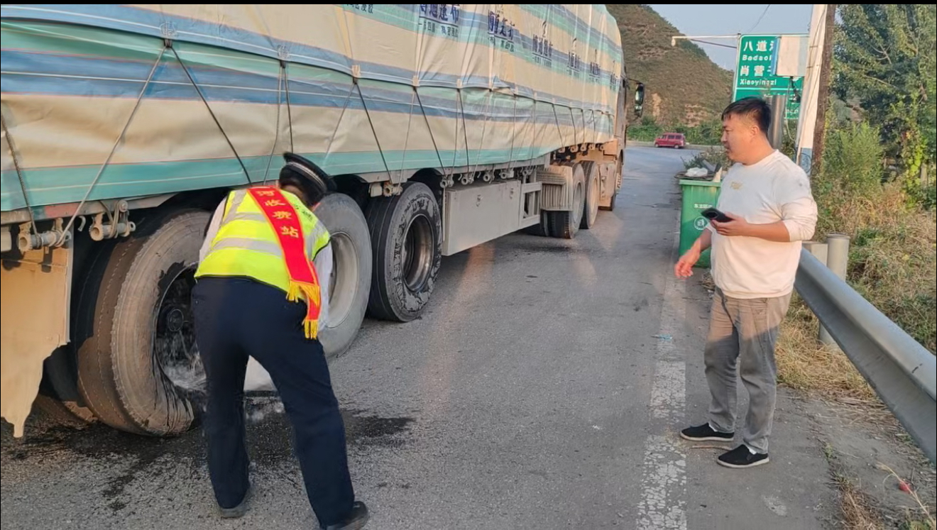 國慶假期出行高峰期間,八道河收費(fèi)站車流顯著攀升。全體工作人員堅(jiān)守崗位,切實(shí)履行道路通行安全保障職責(zé)。10月2日,一輛大貨車下道時,因長途行駛引發(fā)剎車系統(tǒng)過熱,突發(fā)故障滯留在外廣場,存在安全風(fēng)險。