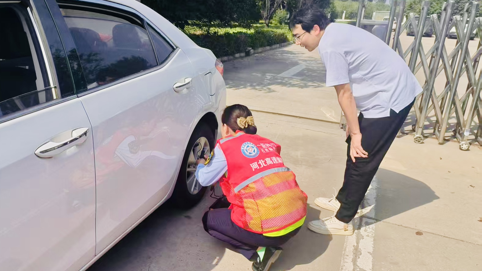 班長及時趕到,引導(dǎo)車輛安全停靠安全區(qū)域,并使用站內(nèi)充氣泵為輪胎補氣。整個過程處置高效,未影響車道正常通行。輪胎恢復(fù)正常后,工作人員建議司機對車輛進行進一步檢查,確保行車安全。司機對工作人員的細心發(fā)現(xiàn)和及時幫助表示由衷感謝。