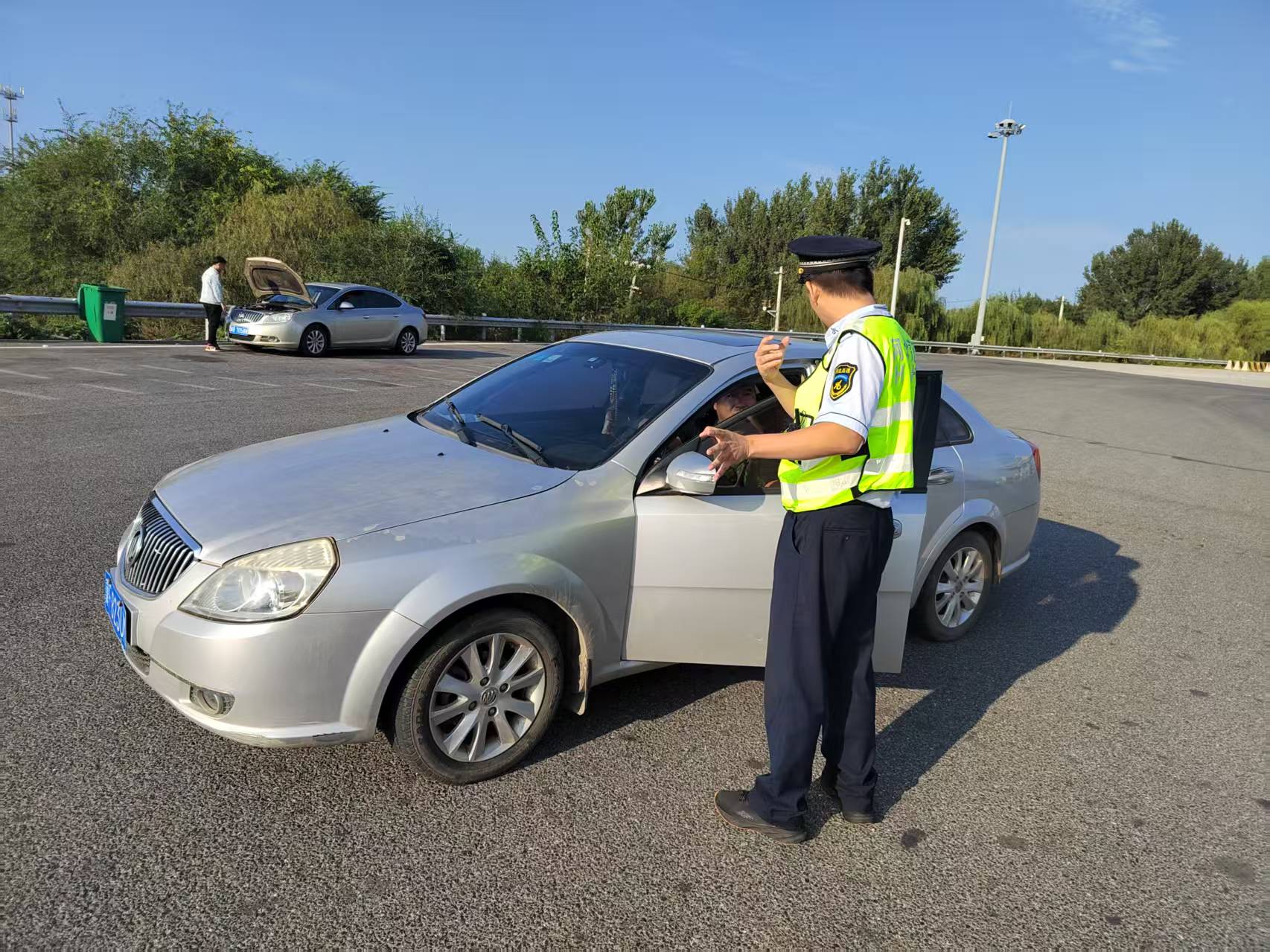 “您好,這里是收費站廣場,不能停車,太危險了?!?0月6日中午,收費班長正在收費廣場巡查,看到一輛汽車停在了收費站廣場,立即趕過去及時勸阻。