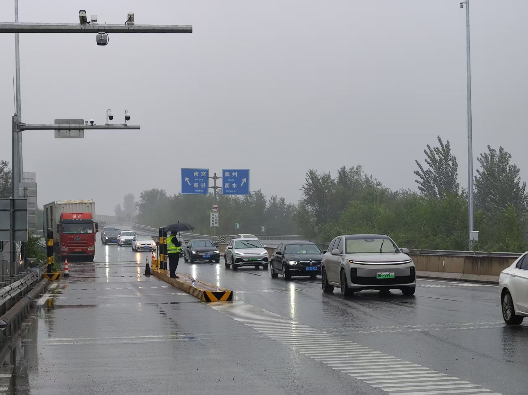 10月8日,隨著國(guó)慶假期返程高峰到來(lái),全國(guó)范圍內(nèi)返程車(chē)流持續(xù)增加,冀州南收費(fèi)站作為區(qū)域交通重要節(jié)點(diǎn),車(chē)流量急劇增長(zhǎng)。同時(shí),收費(fèi)站面臨“陰雨天 + 車(chē)流返程高峰 + 交通管制”三重壓力。冀州南收費(fèi)站立即啟動(dòng)應(yīng)急預(yù)案,全體在站班組迅速集結(jié),冒雨投身疏堵保暢一線。