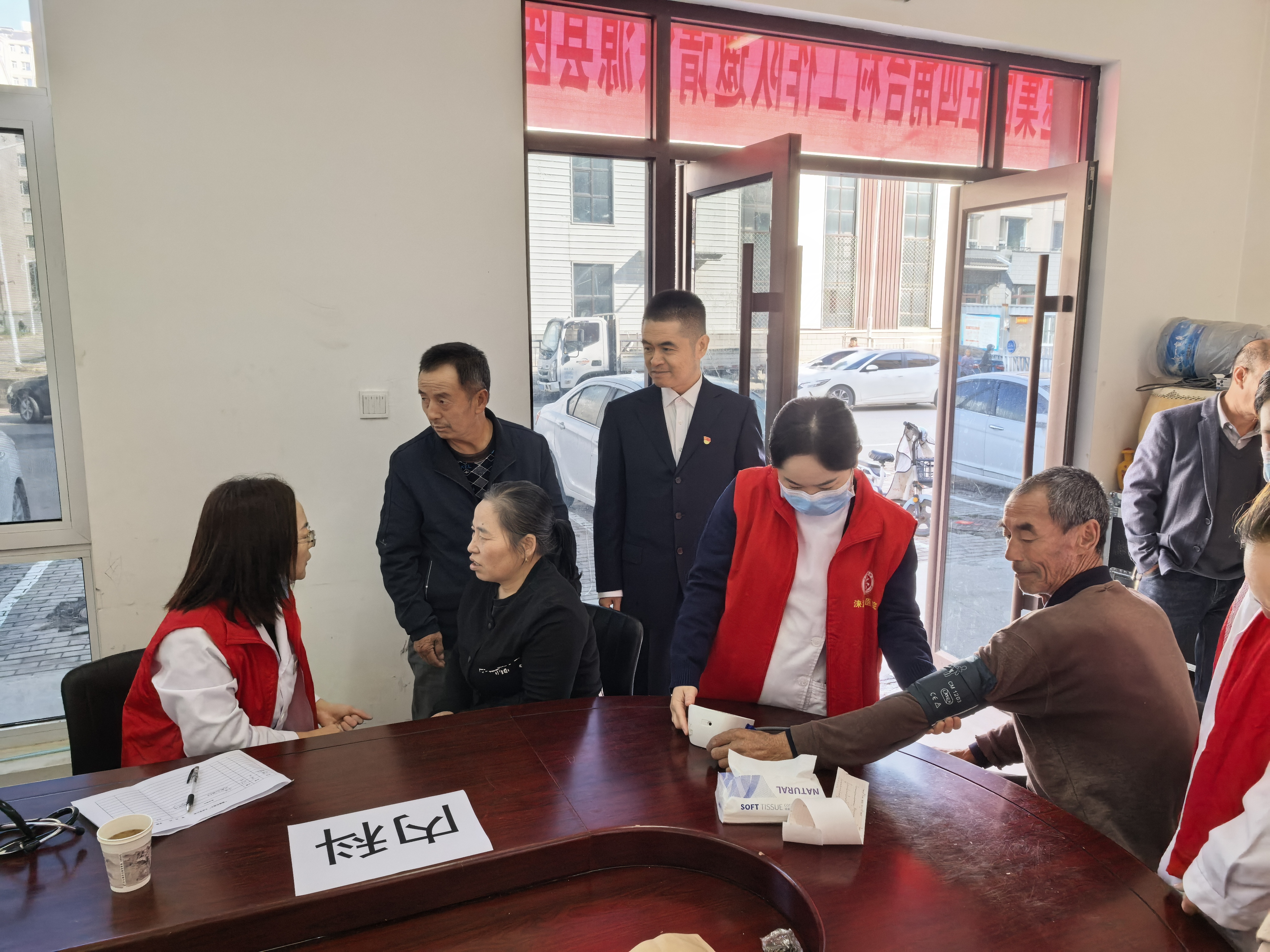 健康義診當(dāng)天,四角臺村駐村工作隊(duì)和村兩委化身志愿者,早早來到現(xiàn)場布置活動(dòng)場地。淶源縣醫(yī)院對此次活動(dòng)高度重視,由副院長親自帶隊(duì),派出由康復(fù)科、老年病科、骨科、內(nèi)科等科主任組成的專家團(tuán)隊(duì),并攜帶彩超、血糖儀、心電圖機(jī)等多種專業(yè)設(shè)備,直接進(jìn)駐村民集中居住區(qū),把優(yōu)質(zhì)的醫(yī)療服務(wù)送到了群眾身邊。