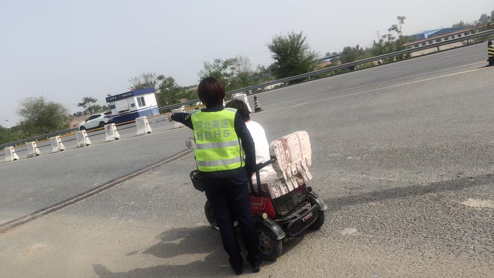 10月14日16時(shí),一女子駕駛電動(dòng)三輪車??吭诶确环止臼Y福山收費(fèi)站收費(fèi)外廣場前。該站收費(fèi)一班泵房值班收費(fèi)員發(fā)現(xiàn)其面露愁容、神情迷茫,隨即上前問詢。經(jīng)了解,該女子從蔣福山紅葉谷游玩返程,因路況不熟、導(dǎo)航信號(hào)不穩(wěn),誤入高速周邊路段。收費(fèi)員見其情緒焦慮,先引導(dǎo)至便民服務(wù)室休息、遞上溫水安撫,待其情緒平穩(wěn)后,結(jié)合電動(dòng)三輪車特性及返程需求,重新規(guī)劃導(dǎo)航路線,并告知沿途路口標(biāo)識(shí)與通行注意事項(xiàng)。女子確認(rèn)路線后再三致謝,駕車安全啟程。收費(fèi)人員目送其安全駛離后返回崗位。