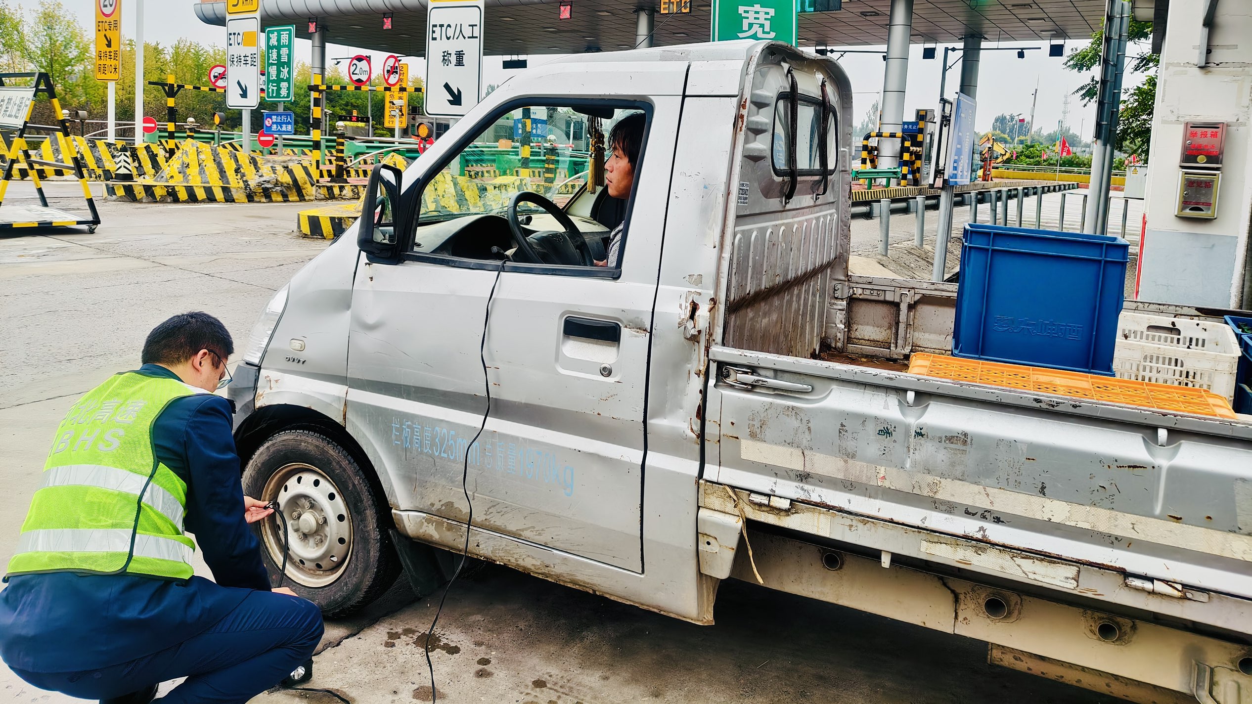 10月16日上午,細(xì)雨淅瀝,一輛小貨車駛?cè)霒|灣收費(fèi)站出口時(shí),因輪胎漏氣停在了車道旁。司機(jī)看著儀表盤上的胎壓提示,滿臉焦急——車上貨物有送達(dá)時(shí)限,本想送完貨再修車,可漏氣的輪胎讓車輛無法繼續(xù)前行。