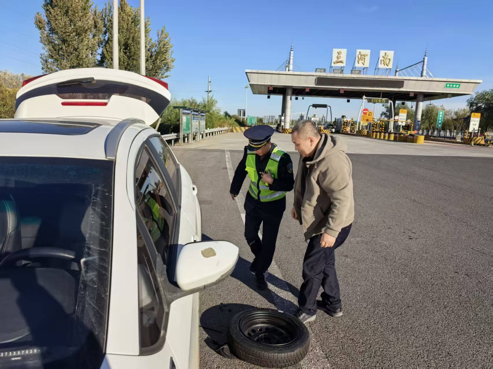 10月20日15時許,一輛白色小車在駛出三河南收費站后,并未如常駛離,而是緩慢停在了安全區(qū)域。司機師傅面帶焦急與無助,下車向當(dāng)班收費員求助。