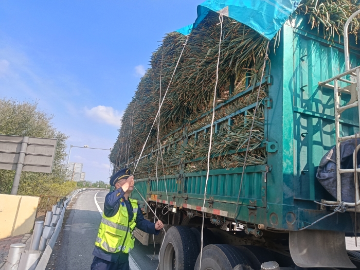 10月22日清晨,京滬分公司東光收費(fèi)站車(chē)流量漸增,收費(fèi)員彭金肖正在進(jìn)行收費(fèi)作業(yè)。當(dāng)一輛滿載大蔥的貨車(chē)緩緩駛?cè)胲?chē)道時(shí),他敏銳地發(fā)現(xiàn)該車(chē)車(chē)頂苫布被風(fēng)吹得邊角垂落下來(lái)。