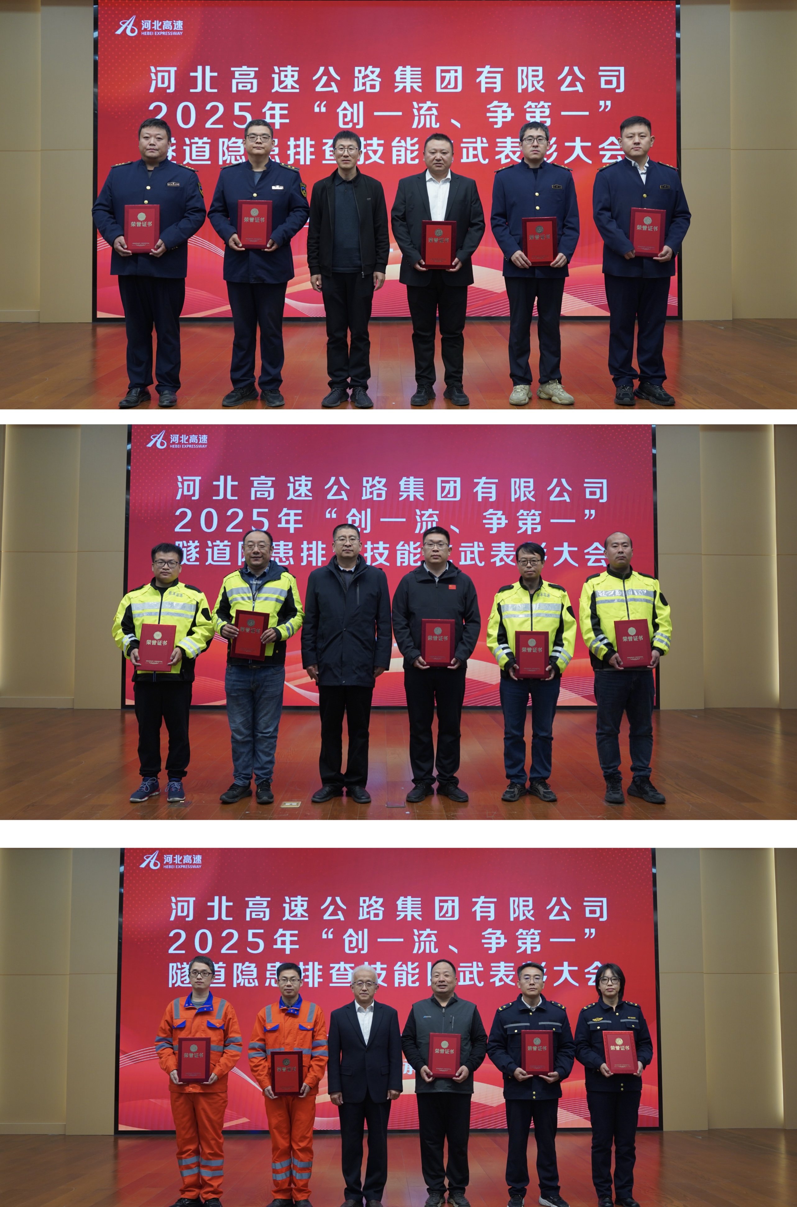 比賽現(xiàn)場,各參賽選手精神飽滿、嚴(yán)謹(jǐn)細(xì)致,按照考核要求有序開展排查工作,從細(xì)微處識別隱患、在規(guī)范中完成操作,充分展現(xiàn)了河北高速人扎實(shí)的專業(yè)功底、敏銳的風(fēng)險(xiǎn)意識與敏捷的應(yīng)變能力。裁判組由集團(tuán)公司聘請的資深專家組成,嚴(yán)格遵循“公平、公正、公開”原則,對照評分細(xì)則逐項(xiàng)細(xì)致打分,全程記錄考核過程,確保賽事結(jié)果客觀權(quán)威、經(jīng)得起檢驗(yàn)。經(jīng)過一天的激烈角逐,最終承德分公司憑借過硬的綜合實(shí)力斬獲一等獎(jiǎng),張涿分公司獲二等獎(jiǎng),邢汾分公司獲三等獎(jiǎng),集團(tuán)公司安全環(huán)保部副部長馬印懷、工會辦公室副主任李宏岳以及承德分公司黨委委員、副總經(jīng)理劉順林共同為獲獎(jiǎng)團(tuán)隊(duì)頒獎(jiǎng)。