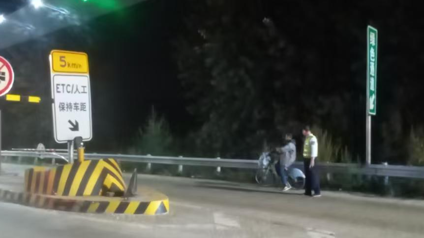 10月23日20時03分,一名醉酒騎行者突然闖入香河西收費站入口車道,班長發(fā)現(xiàn)該情況后,立即跑上前詢問。走近后,聞到該男子身上散發(fā)著濃烈的酒精氣味。經(jīng)溝通發(fā)現(xiàn),該男子言語含糊、步態(tài)不穩(wěn),明顯處于醉酒狀態(tài),為避免發(fā)生交通安全事故,班長將其引導(dǎo)至安全區(qū)域。