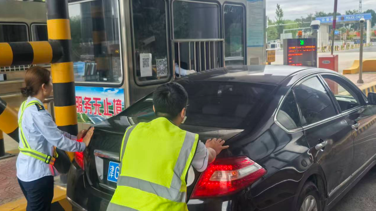此時后方車輛開始不斷鳴笛,司機師傅額頭冒出冷汗。正在廣場巡視的收費班長發(fā)現(xiàn)異常,立即趕到現(xiàn)場,并通知當班備崗的其他人員快步跑了過去?!澳确畔率謩x、掛空擋,我們把車推到旁邊安全區(qū)!”,收費班長一邊安撫司機焦急的情緒,一邊組織大家推車。大家齊心協(xié)力將黑色轎車推到20米外的應(yīng)急??奎c。