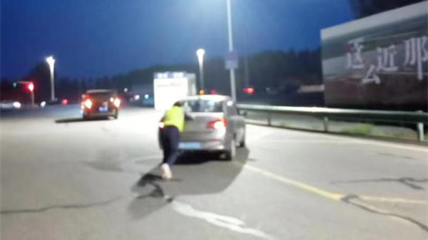 10月28日凌晨3時(shí)許,香河收費(fèi)站內(nèi),收費(fèi)員劉立佳正在崗?fù)ぶ祶?,一陣粗重的喘息聲突然傳入耳中。他探出窗口查看,發(fā)現(xiàn)一輛一型小客車(chē)停在ETC車(chē)道前,司機(jī)正拼盡全力推車(chē),車(chē)身卻紋絲不動(dòng)。