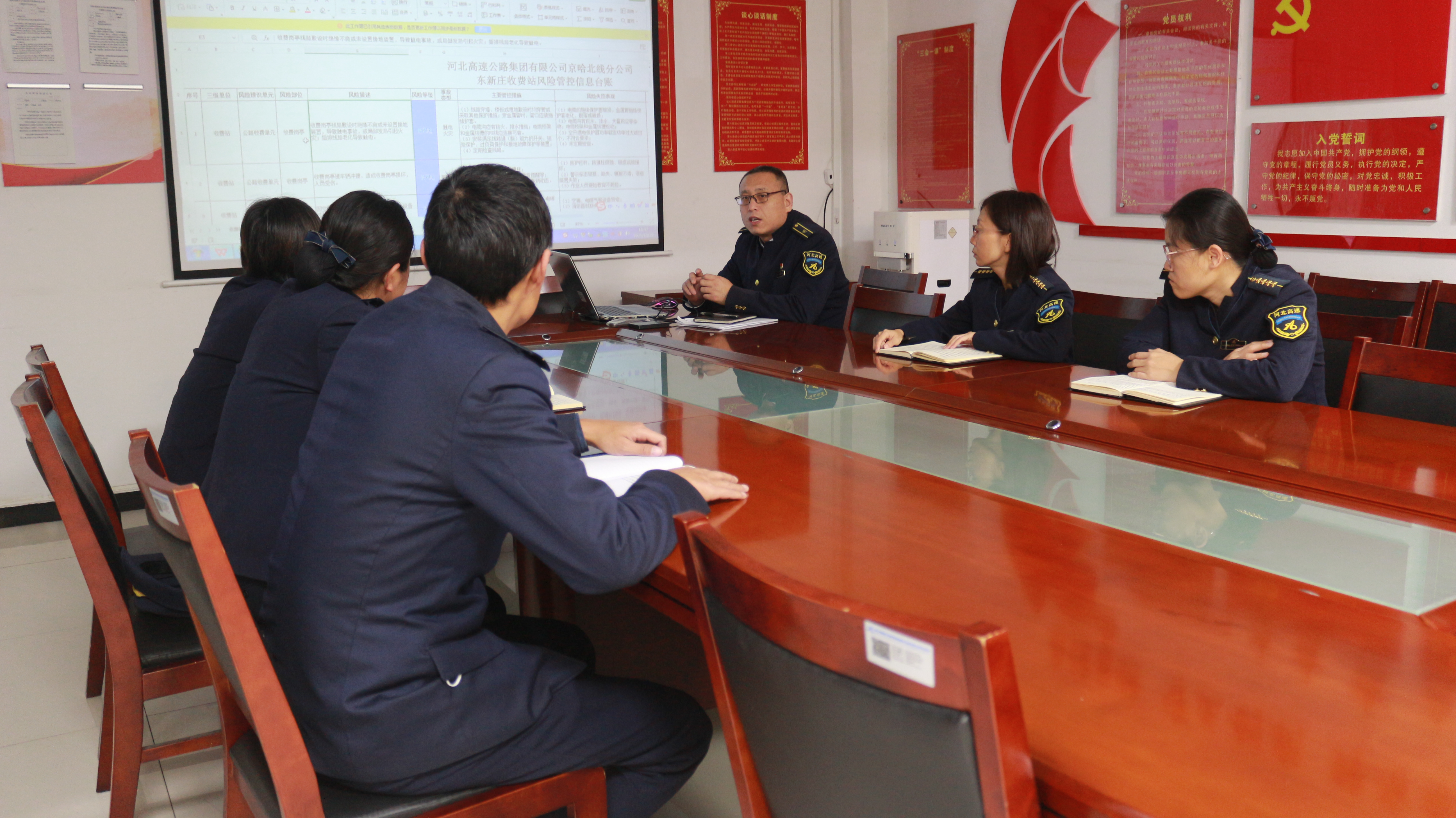 培訓(xùn)會上,主要圍繞雙控體系核心要義和收費站風(fēng)險管控信息臺賬展開系統(tǒng)講解。結(jié)合收費崗?fù)?、收費設(shè)備、廣場疏導(dǎo)作業(yè)、辦公區(qū)域日常管理等實際工作場景,引導(dǎo)職工對照崗位職責(zé),全面梳理以往未關(guān)注到的潛在風(fēng)險,如車道車輛剮蹭隱患、惡劣天氣下的交通疏導(dǎo)風(fēng)險、用電設(shè)備老化風(fēng)險等,確保風(fēng)險點排查無死角、無遺漏。