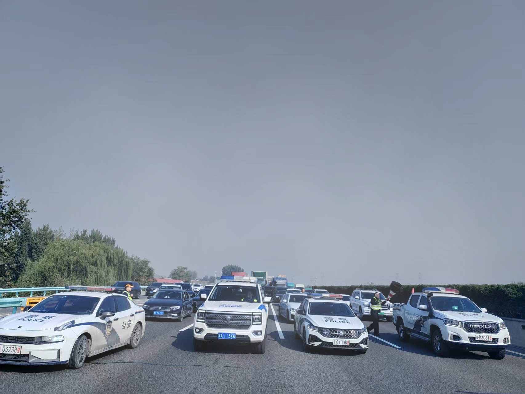 行動(dòng)中,應(yīng)急車輛與警車組成“壓車編隊(duì)”,“一”字排開,分列各車道前端,由北向南低速引導(dǎo),形成移動(dòng)防護(hù)屏障。沿途利用可變情報(bào)板、高音喇叭、新媒體平臺(tái)實(shí)時(shí)發(fā)布路況信息,提醒車輛保持車距、有序跟行。