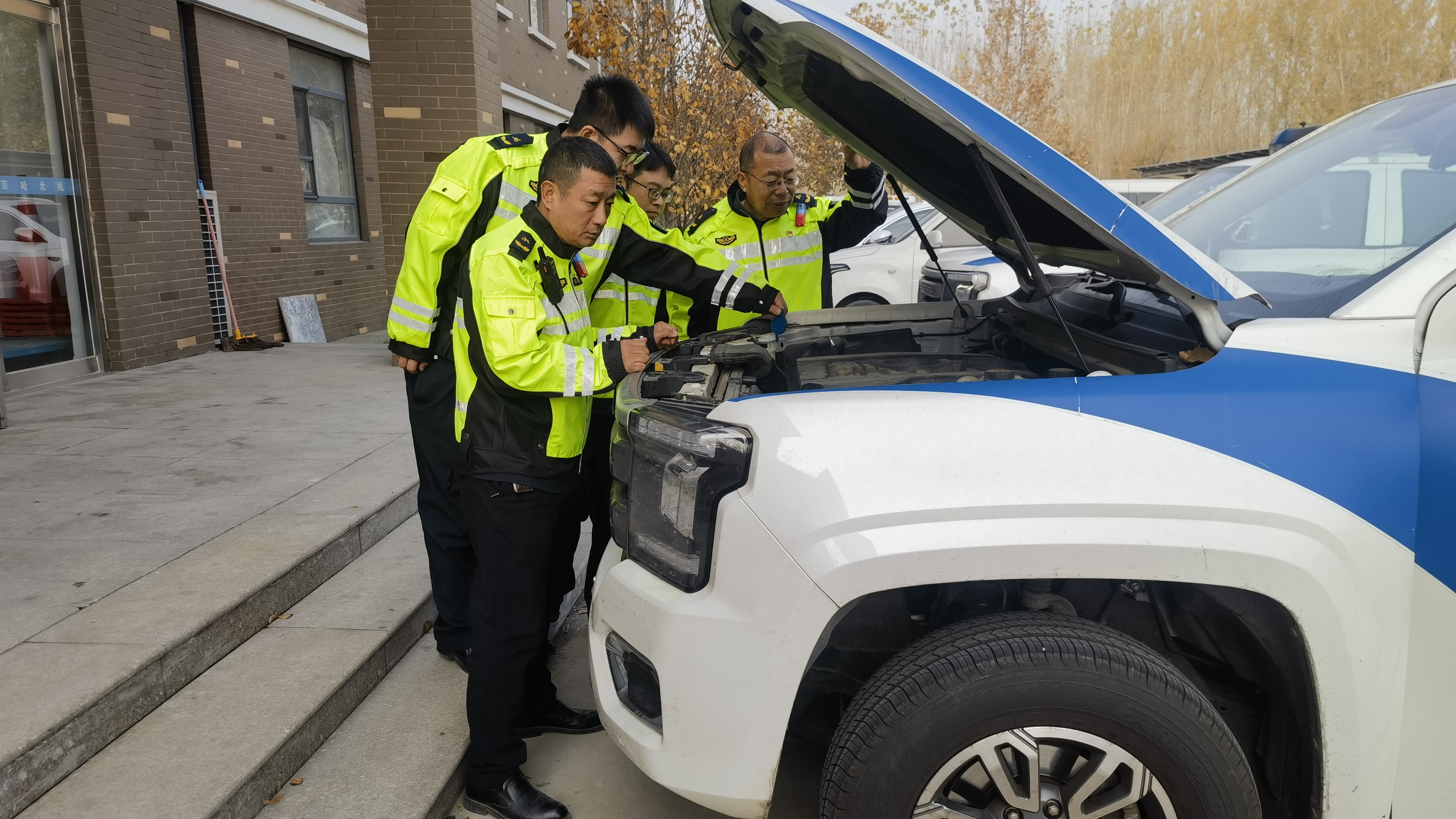 活動(dòng)中,支部黨員統(tǒng)一佩戴黨徽、亮明身份,主動(dòng)牽頭對(duì)所有巡查車輛及隨車裝備開展“全覆蓋、無(wú)死角”的安全“體檢”。嚴(yán)格對(duì)照操作規(guī)程,聚焦車輛發(fā)動(dòng)機(jī)工況、制動(dòng)系統(tǒng)靈敏度、聲光警示裝置有效性、輪胎磨損程度等核心部件,同步對(duì)安全錐、聲光報(bào)警器等隨車裝備逐項(xiàng)排查,堅(jiān)決杜絕隱患遺漏。經(jīng)全面排查,所有車輛運(yùn)行狀態(tài)良好,隨車裝備均符合安全要求。