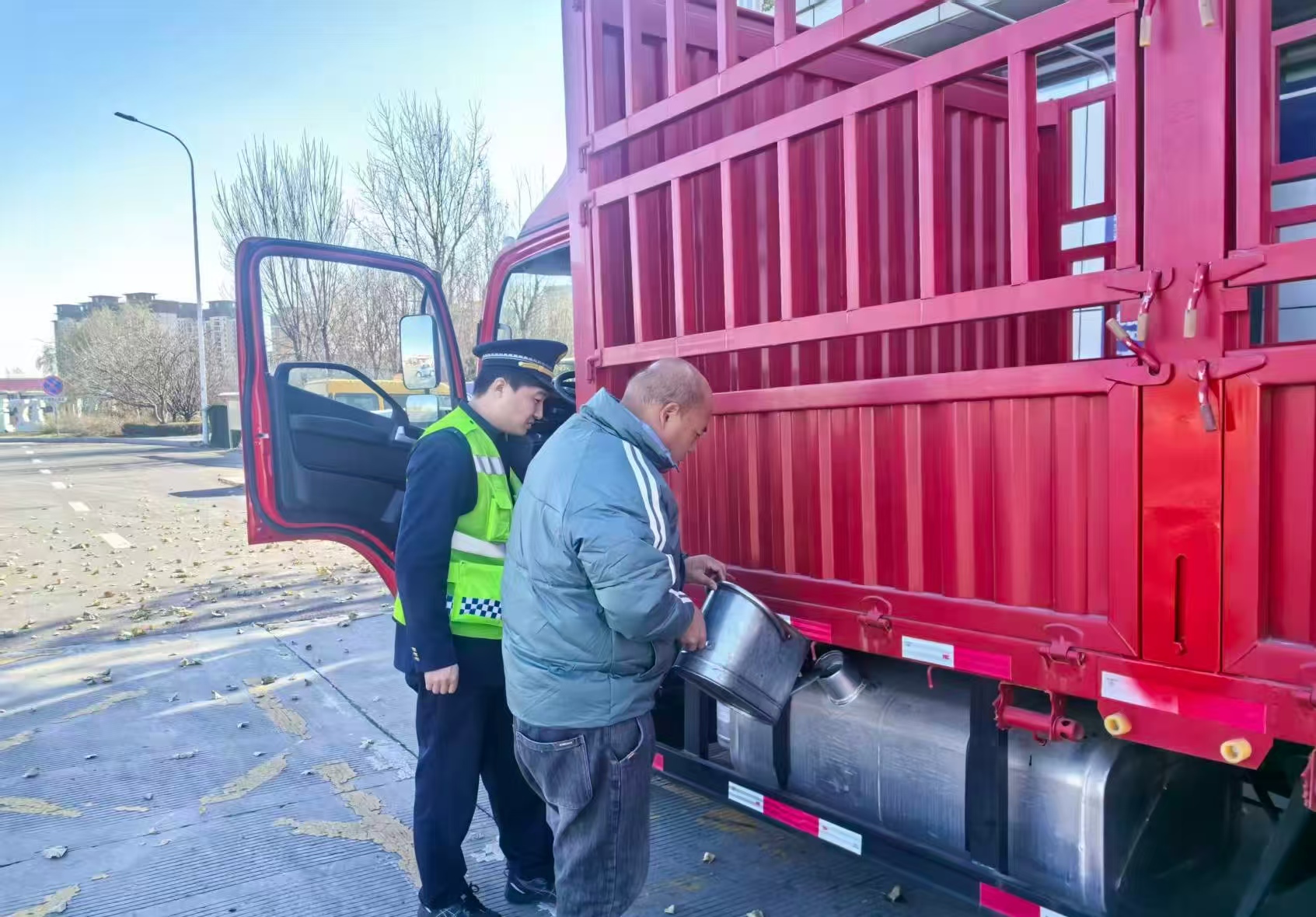 經(jīng)仔細檢查,工作人員發(fā)現(xiàn)該車油箱已完全見底,確認車輛熄火是由于燃油耗盡所致。班長當機立斷,立即安排工作人員前往附近加油站購買燃油。燃油購回后,工作人員迅速協(xié)助司機將燃油注入油箱。隨著車輛順利啟動,司機緊緊握著班長的手,激動不已,連聲致謝:“真是太感謝你們了!要不是你們幫忙推車,還幫我買油,我真不知道該如何是好,你們的服務太暖心了!”