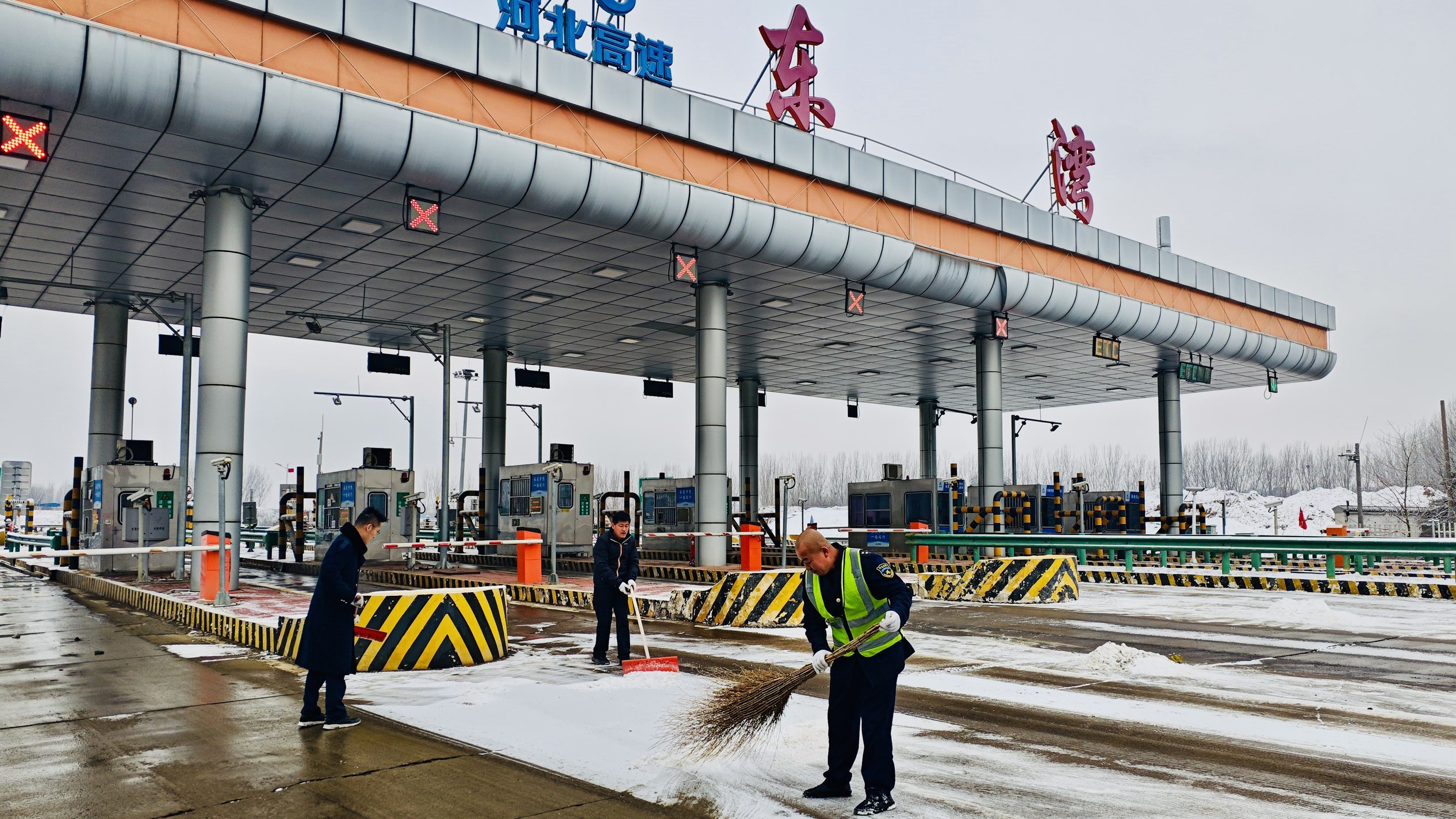 隊(duì)員們聞雪而動(dòng),立即集結(jié),戴好手套、備齊工具,手持鐵鍬與掃帚,迅速投入清雪一線。大家分工協(xié)作,配合默契,鏟雪、清掃、歸堆……盡管寒風(fēng)凜冽,卻無人退縮,一個(gè)個(gè)忙碌的身影在雪地里格外醒目,成為了收費(fèi)站一道生動(dòng)而溫暖的風(fēng)景。