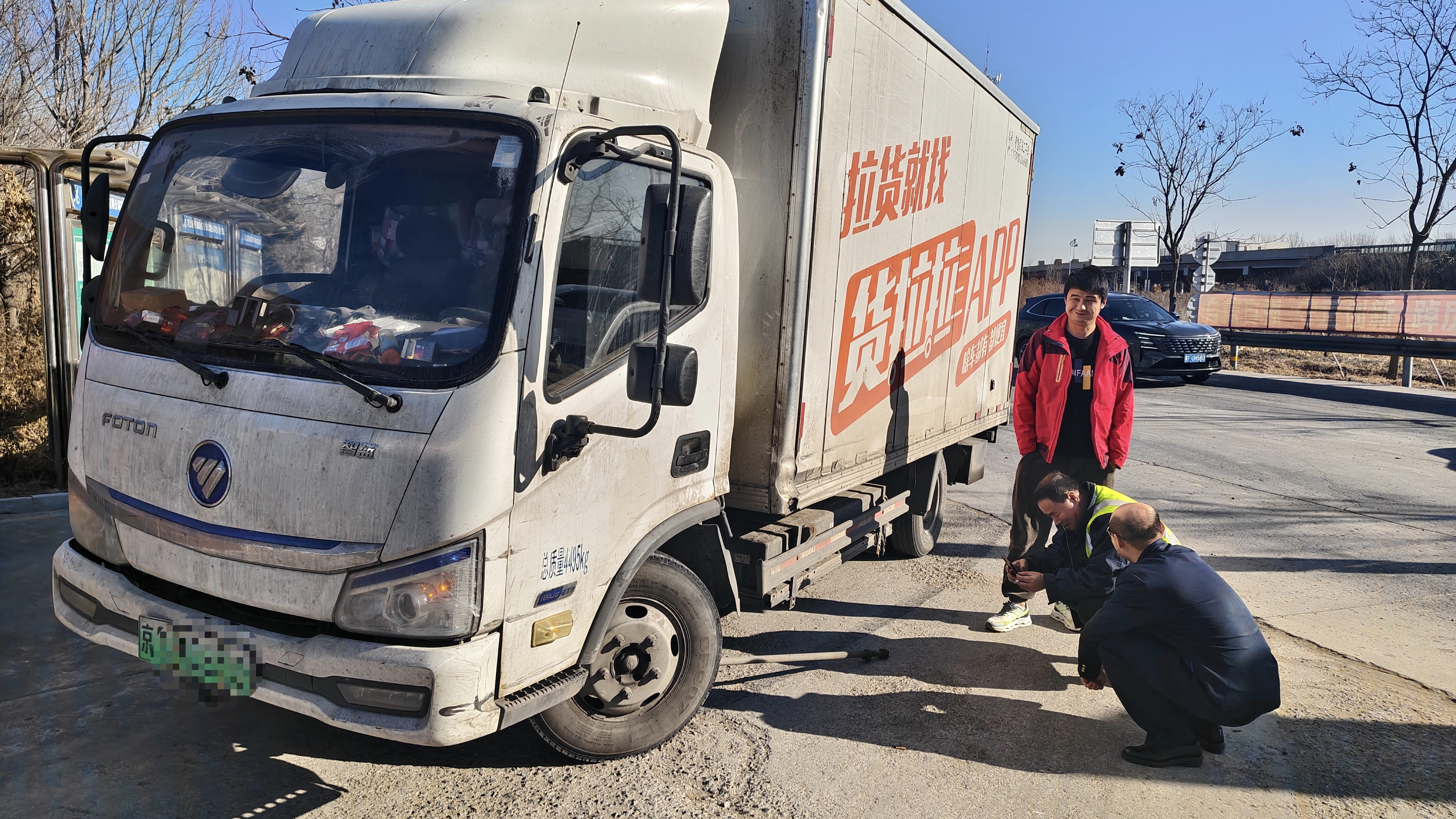 12月21日14時30分,一輛白色貨拉拉廂式貨車駛?cè)臊R心莊收費站時,車輛突發(fā)異響與抖動。經(jīng)驗豐富的收費人員立即察覺異常,迅速引導(dǎo)車輛停至安全區(qū)域。