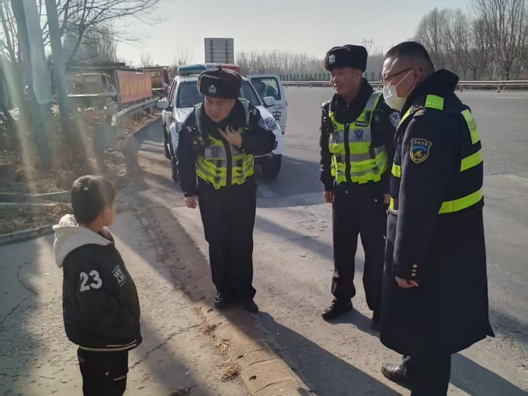 “孩子,快停下!這里危險(xiǎn)!”張鵬立刻呼喊攔停男孩,一邊警惕觀察過(guò)往車(chē)輛保障安全,一邊第一時(shí)間用對(duì)講機(jī)緊急通知班長(zhǎng)關(guān)武。關(guān)武接到消息后火速趕到現(xiàn)場(chǎng),為避免孩子受到車(chē)流驚嚇,當(dāng)即小心翼翼將其帶回收費(fèi)站臨時(shí)休息室。