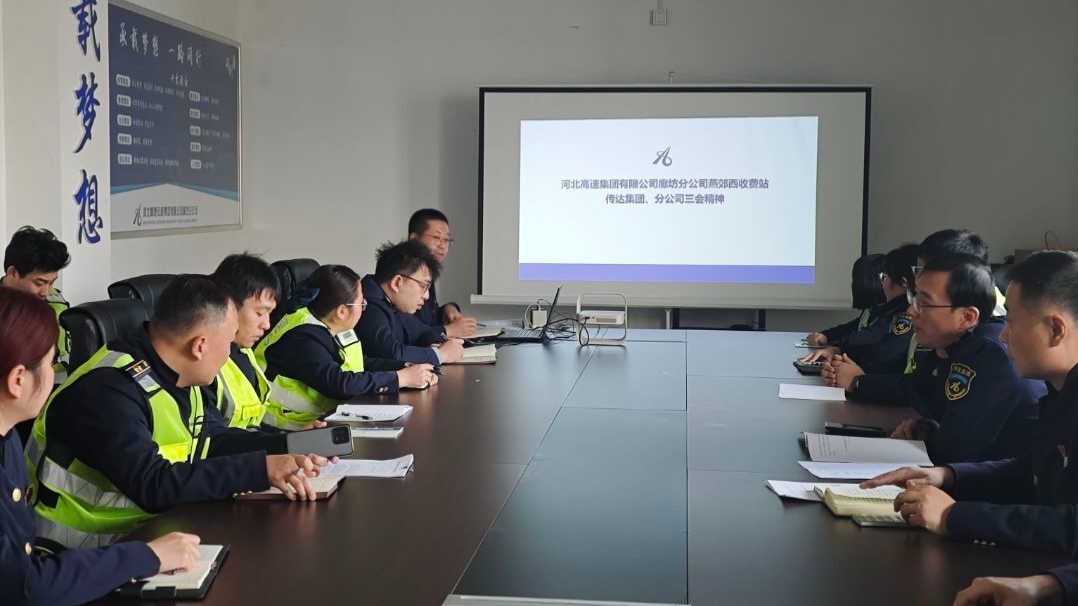 1月15日,燕郊西收費(fèi)站全面?zhèn)鬟_(dá)學(xué)習(xí)集團(tuán)公司、分公司“三會”精神,系統(tǒng)解讀會議核心要義與實(shí)踐要求,部署貫徹落實(shí)具體舉措,全體干部職工參會。