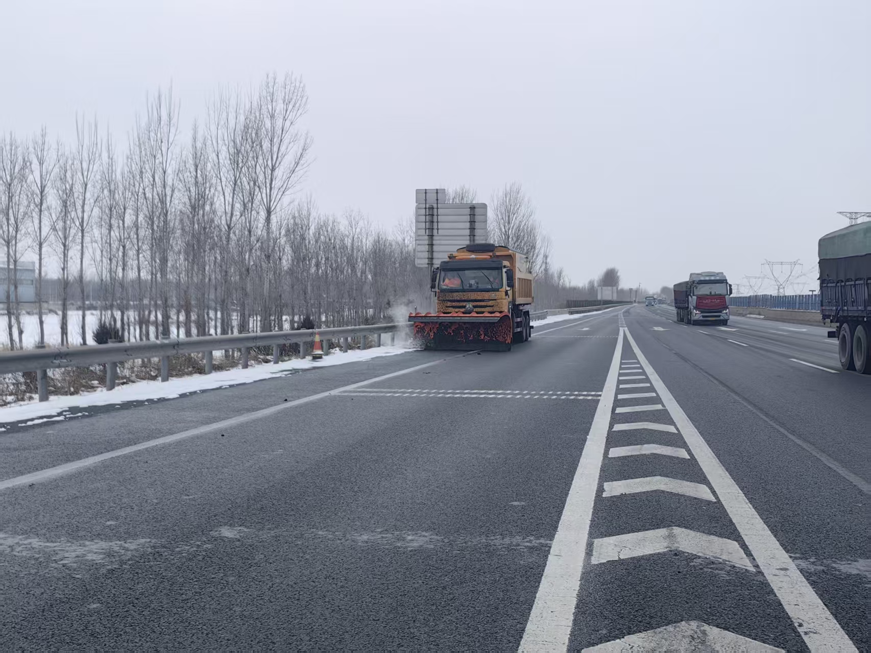 針對(duì)不同路段的地形特點(diǎn)與積雪情況,除雪作業(yè)隊(duì)伍全面落實(shí)“兩個(gè)清單”,采取“固態(tài)撒布+局部鏟雪”的精準(zhǔn)作業(yè)模式:在主行車(chē)道、長(zhǎng)直路段等開(kāi)闊區(qū)域,作業(yè)車(chē)輛高效開(kāi)展固態(tài)融雪劑撒布作業(yè),快速降低路面結(jié)冰風(fēng)險(xiǎn);在橋梁、互通立交、急彎陡坡等易積雪結(jié)冰重點(diǎn)區(qū)域,以及車(chē)流量較大的路段局部區(qū)域,同步投入鏟雪設(shè)備開(kāi)展集中鏟雪作業(yè),徹底清除路面積雪,保障車(chē)輛通行順暢。作業(yè)人員頂風(fēng)冒雪、輪班值守,始終堅(jiān)守在除雪一線,用實(shí)干詮釋責(zé)任擔(dān)當(dāng)。
