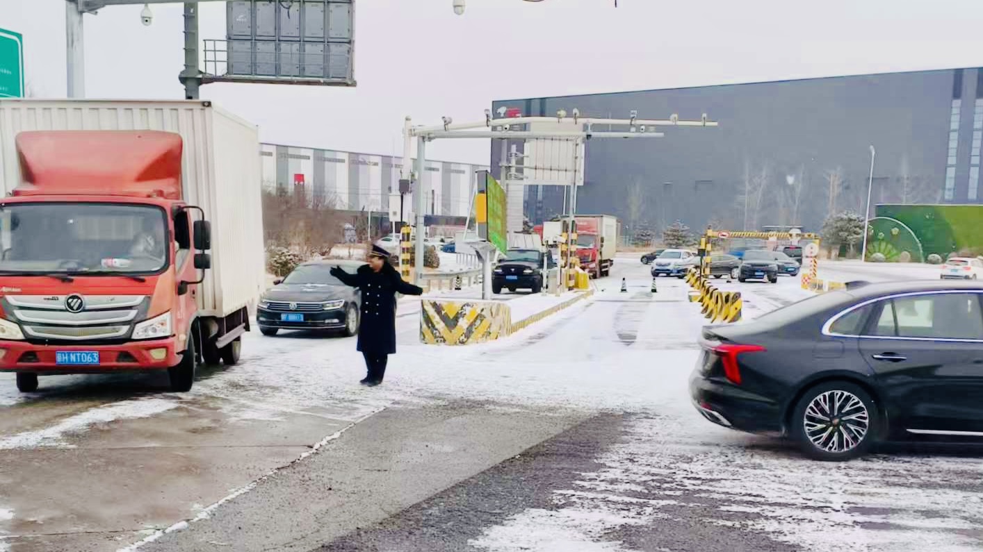 在漫長的等待中,工作人員始終堅守崗位。他們頂著寒風(fēng)疏導(dǎo)車流,耐心解釋交通管制信息,細(xì)心檢查車輛狀況。一位帶著孩子的母親在接過工作人員遞來的熱水時,臉上露出微笑;貨車司機(jī)聽到的安全駕駛提示,頻頻點(diǎn)頭。