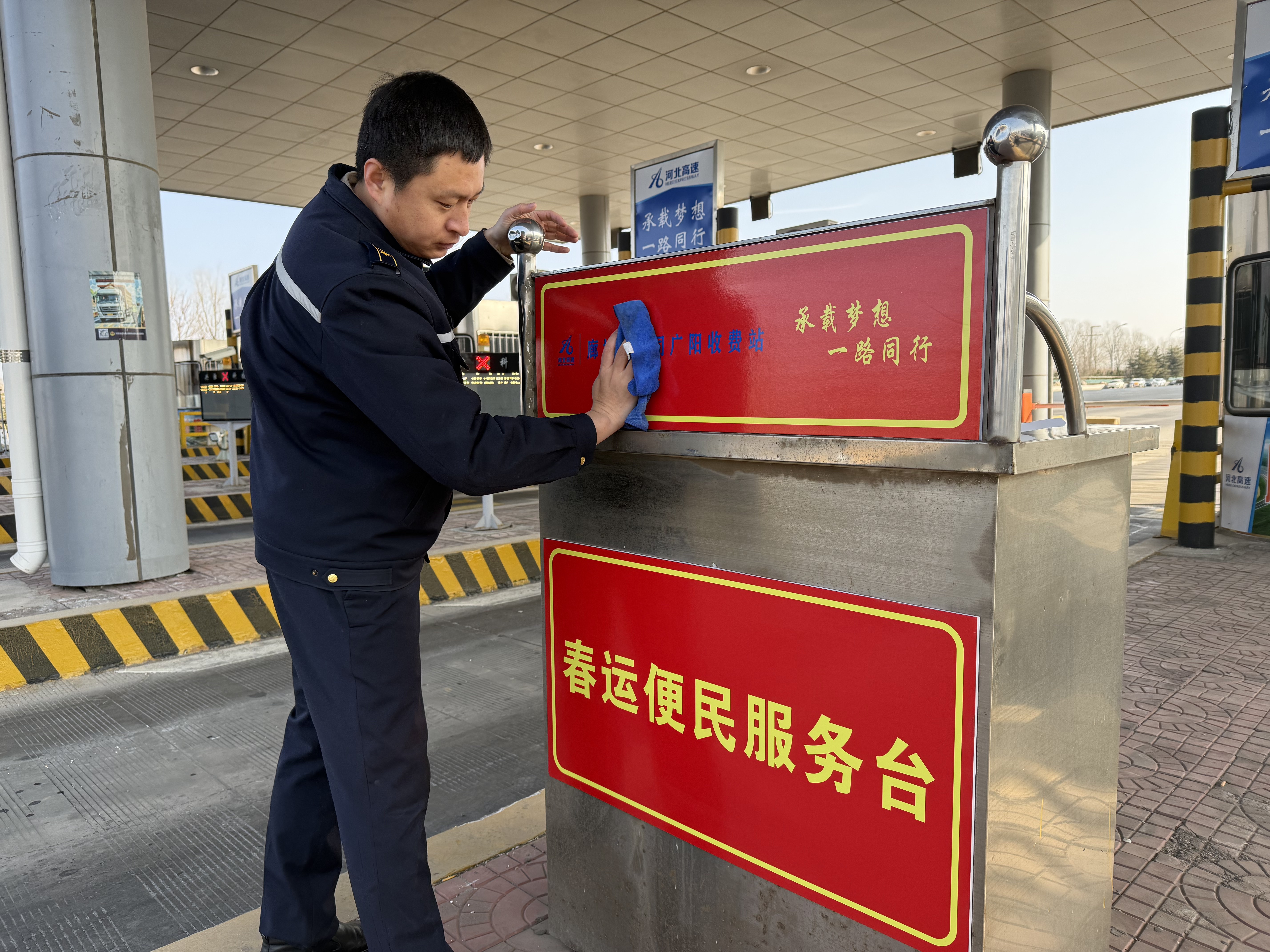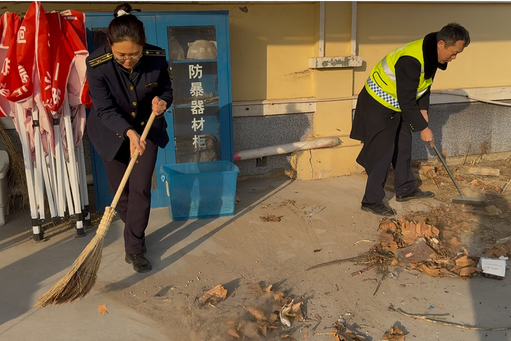 活動中,全站職工分工明確、干勁十足,以收費廣場、收費崗亭、通行車道為核心,開展全方位、無死角的清潔整治工作。大家手持清潔工具,認真清掃廣場內(nèi)的紙屑、雜物等垃圾,細致擦拭崗亭玻璃、收費設(shè)備,讓服務窗口窗明幾凈;對墻角、車道縫隙、綠化帶周邊等易積污的衛(wèi)生死角進行徹底清理;同步集中清運站區(qū)內(nèi)的落葉、堆積雜物,做到不留盲區(qū)、不漏細節(jié)。針對春運便民服務臺,工作人員對急救箱、飲用水、交通指引手冊等物資進行全面整理、及時補充,確保各類便民用品齊全充足、擺放規(guī)范有序,切實提升便民服務能力。經(jīng)過共同努力,站區(qū)環(huán)境煥然一新,通行秩序井然有序。