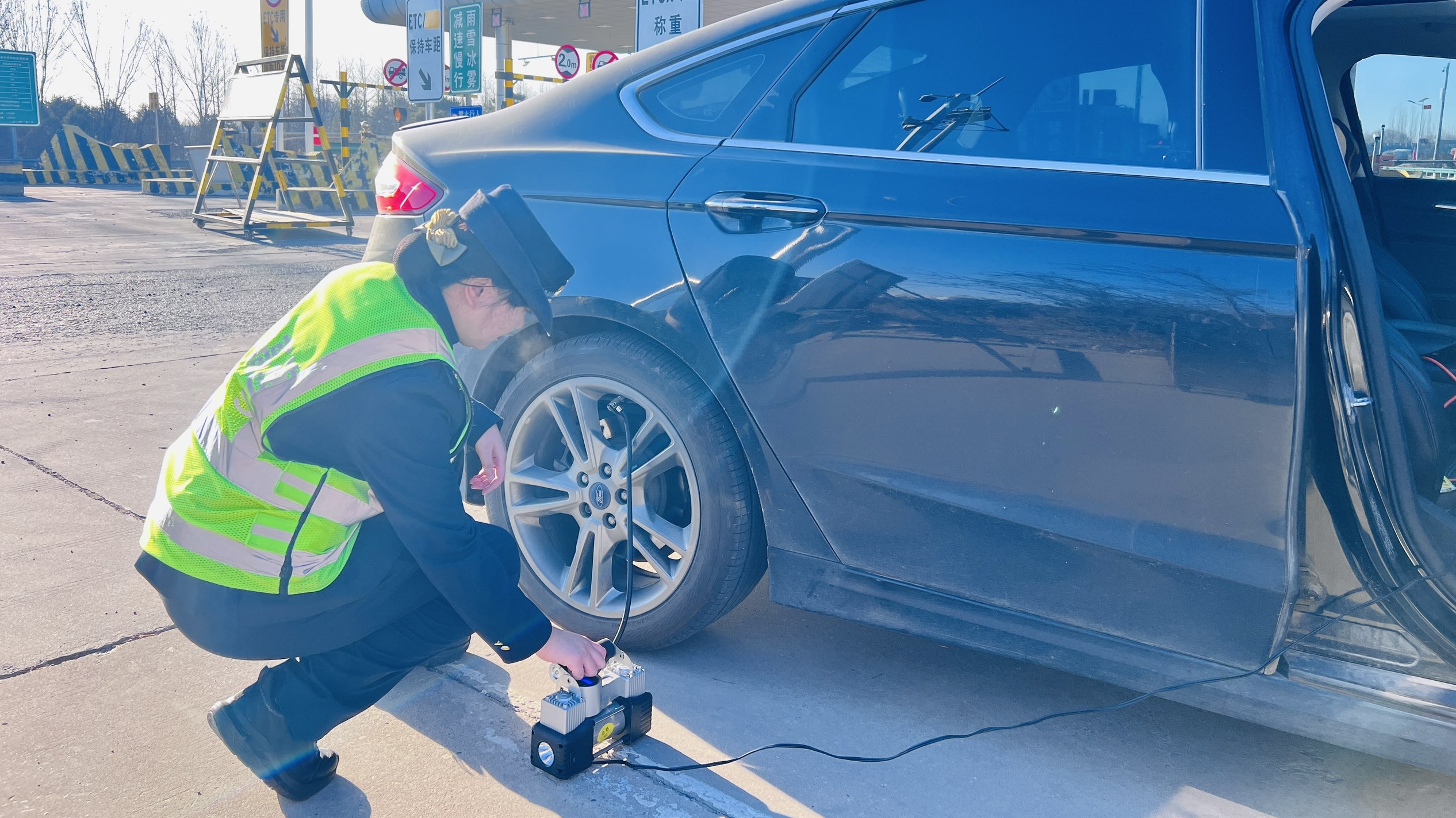 1月29日上午10時,東灣收費(fèi)站廣場灑滿陽光,空氣里透著清冽的寒意。疏導(dǎo)員正在車道邊巡視,一輛黑色轎車緩緩?fù)T趶V場。司機(jī)搖下車窗,神色焦急地指向側(cè)面——輪胎胎壓不足,已不敢繼續(xù)行駛。
